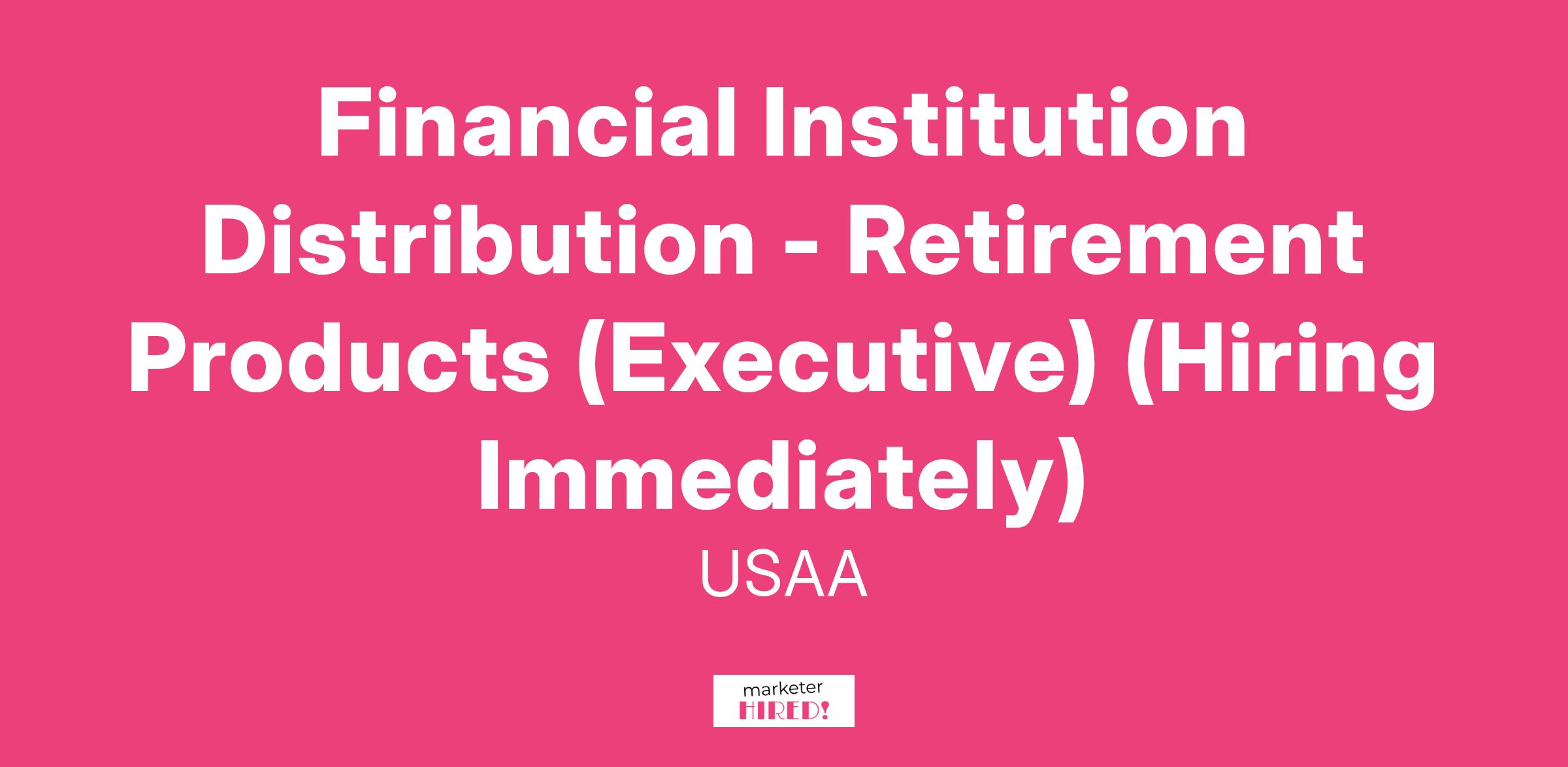 As a dedicated Financial Institution Distribution - Retirement Products (Executive), you'll be responsible for the vision and execution of Life Company's external distribution strategy for retirement products, with a focus on annuities. Has end-to-end responsibility to develop, maintain, and enhance relationships with existing and future institutional distribution partners. Promotes revenue growth through frequent executive-level client interactions focused on solutions regarding USAA member strategy and new product development. Acts as the USAA representative to top-level executive leadership from large and complex Financial Services/Sub-Advisory organizations to build and provide comprehensive relationship management to clients. Engages with industry organizations to establish and maintain USAA's industry presence. Accountable for managing suppliers delivering operational, technology, service, and field sales support to deliver products and services within prescribed business requirements. Partners collaboratively with internal Enterprise partners (e.g., product management, marketing, finance, IT) to coordinate all sales and support services for client accounts. Ensures general management of competing priorities to include member, employee and financial outcomes while balancing continuous improvement and innovation.