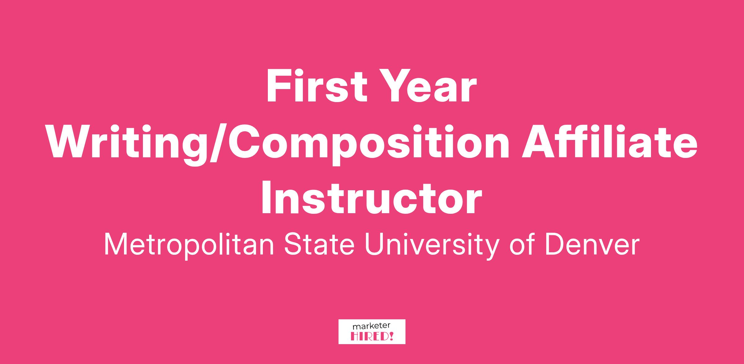 The Department of English at Metropolitan State University of Denver (MSU Denver) invites applications for part-time affiliate faculty instructors of English (First Year Writing).