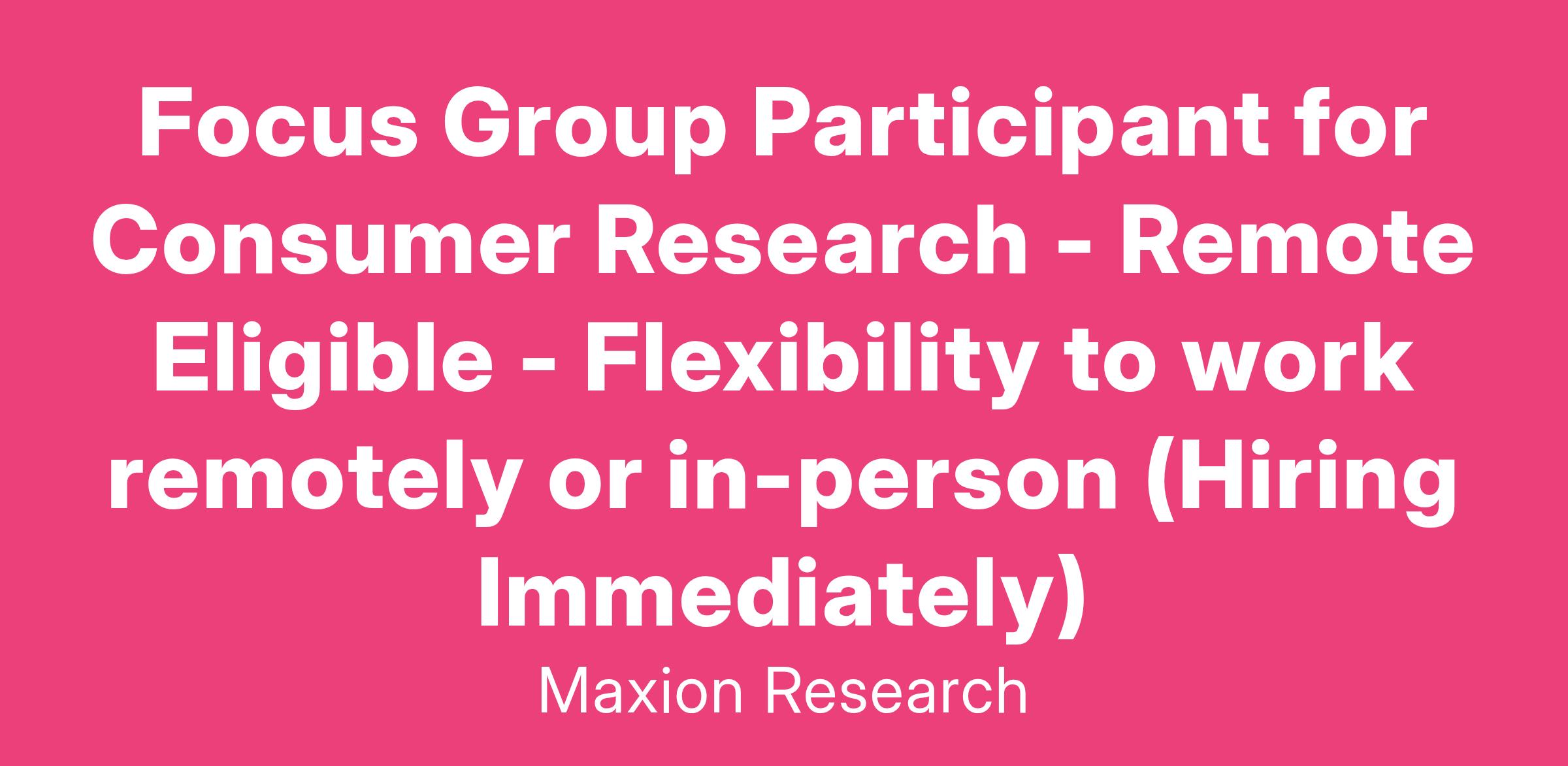 Focus Group Participant for Consumer Research - Remote Eligible - Flexibility to work remotely or in-person (Hiring Immediately)