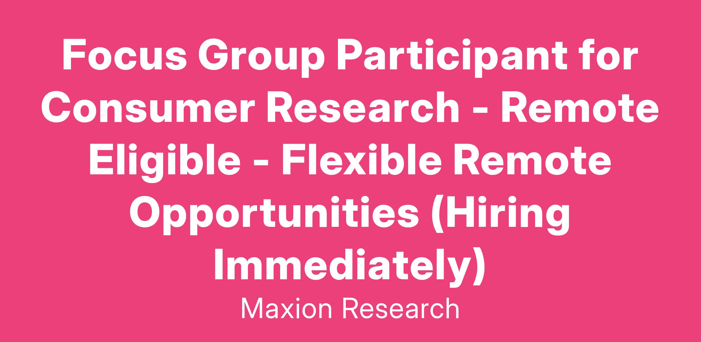 Focus Group Participant for Consumer Research - Remote Eligible - Flexible Remote Opportunities (Hiring Immediately)