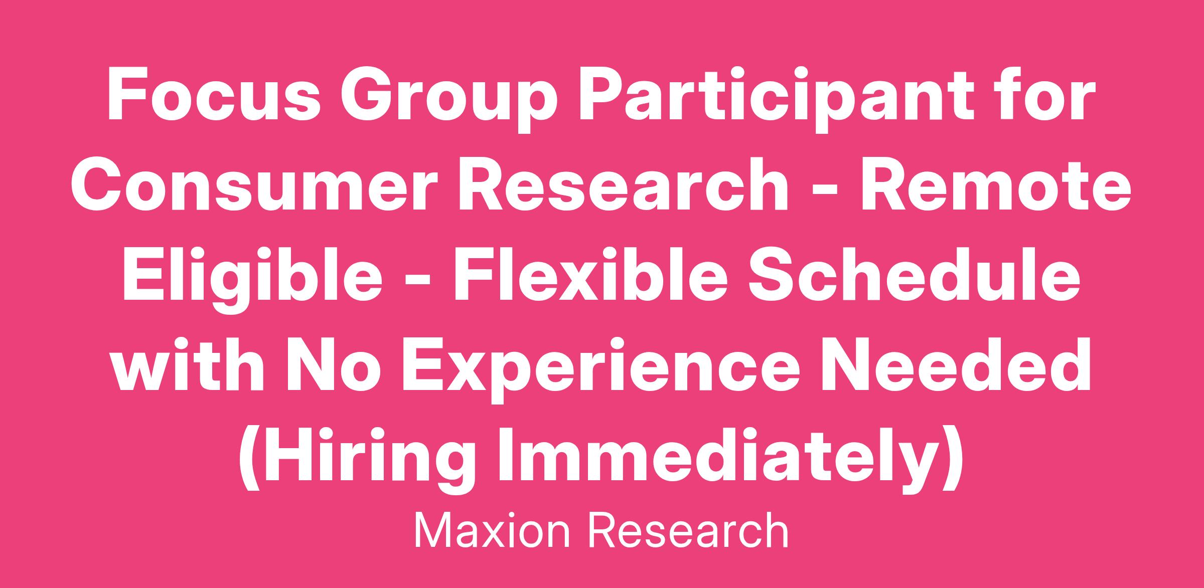Focus Group Participant for Consumer Research - Remote Eligible - Flexible Schedule with No Experience Needed (Hiring Immediately)