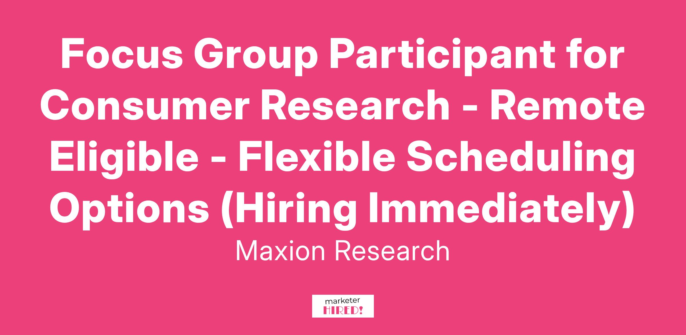 Focus Group Participant for Consumer Research - Remote Eligible - Flexible Scheduling Options (Hiring Immediately)