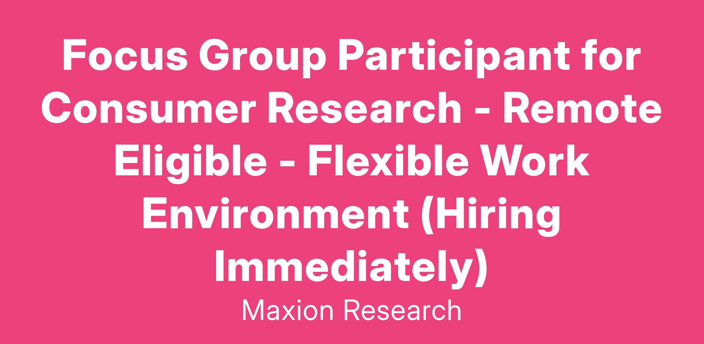 Focus Group Participant for Consumer Research - Remote Eligible - Flexible Work Environment (Hiring Immediately)