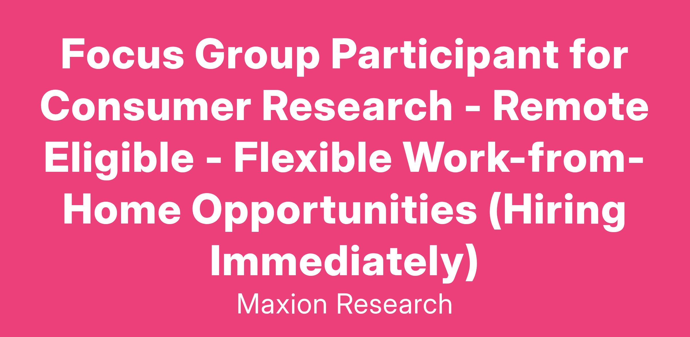 Focus Group Participant for Consumer Research - Remote Eligible - Flexible Work-from-Home Opportunities (Hiring Immediately)