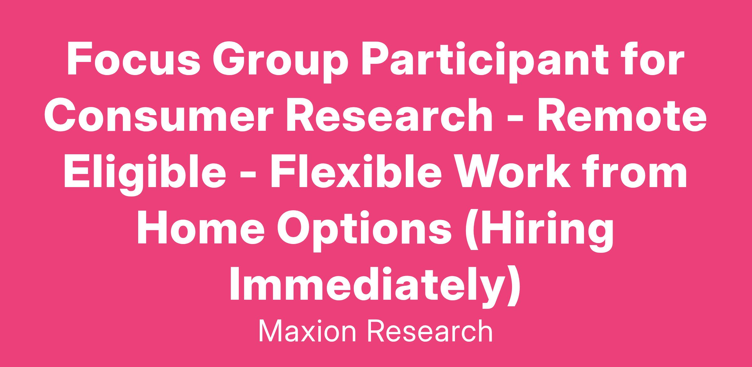 Focus Group Participant for Consumer Research - Remote Eligible - Flexible Work from Home Options (Hiring Immediately)