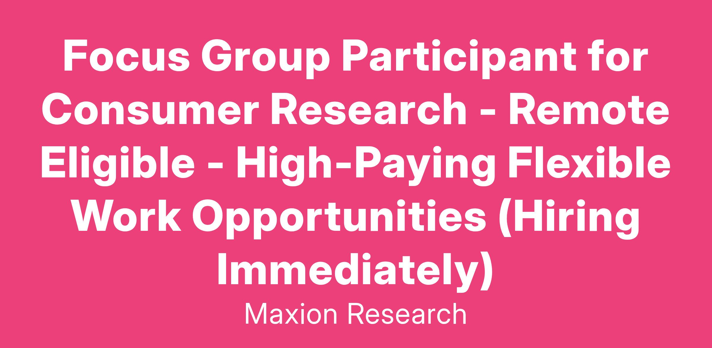 Focus Group Participant for Consumer Research - Remote Eligible - High-Paying Flexible Work Opportunities (Hiring Immediately)