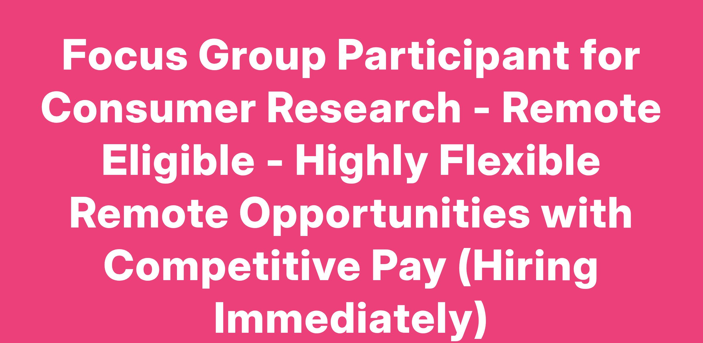 Focus Group Participant for Consumer Research - Remote Eligible - Highly Flexible Remote Opportunities with Competitive Pay (Hiring Immediately)