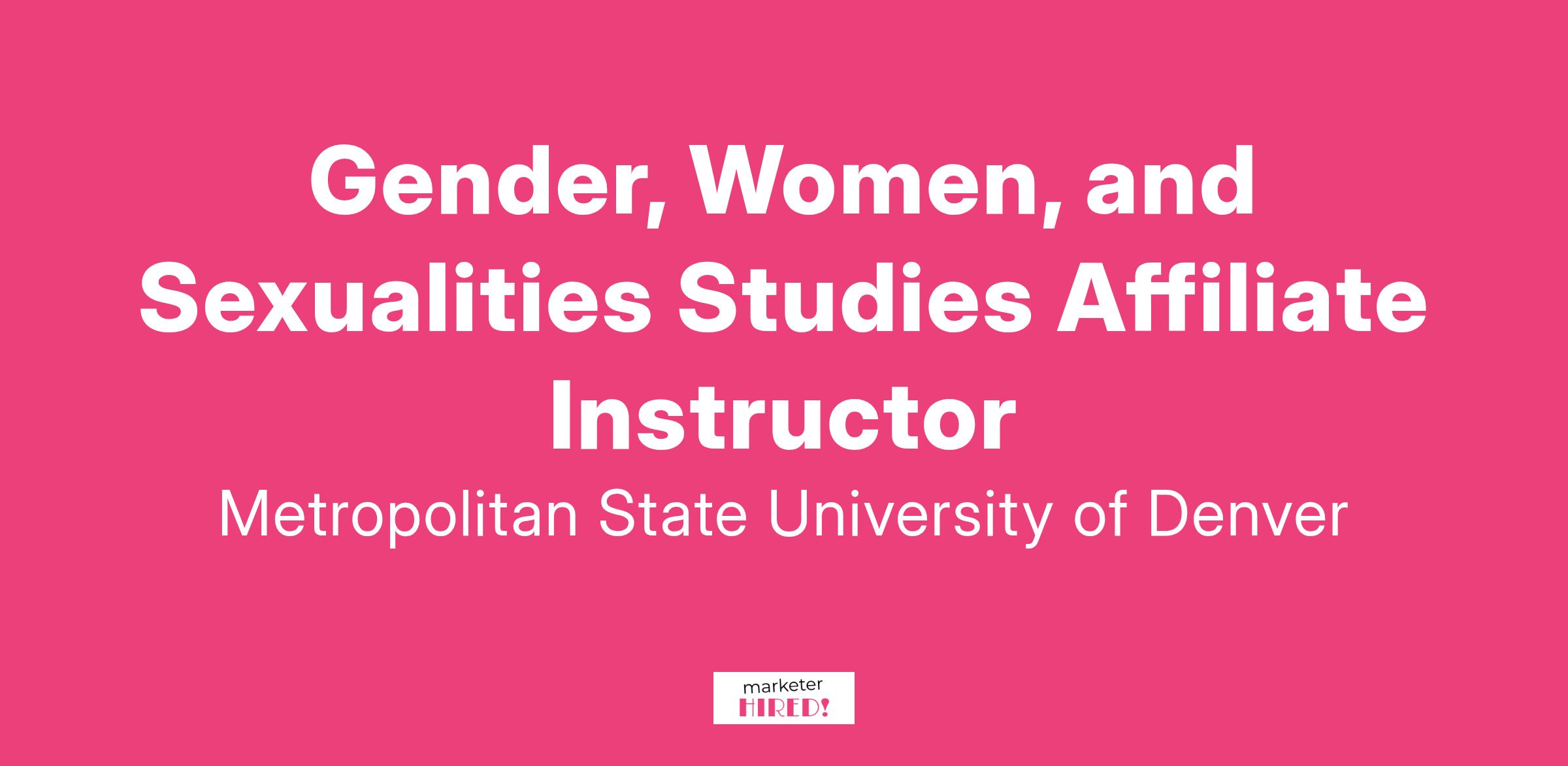 Metropolitan State University of Denver (MSU Denver) invites applications for part-time affiliate faculty to teach courses in gender, women, and sexualities studies.
