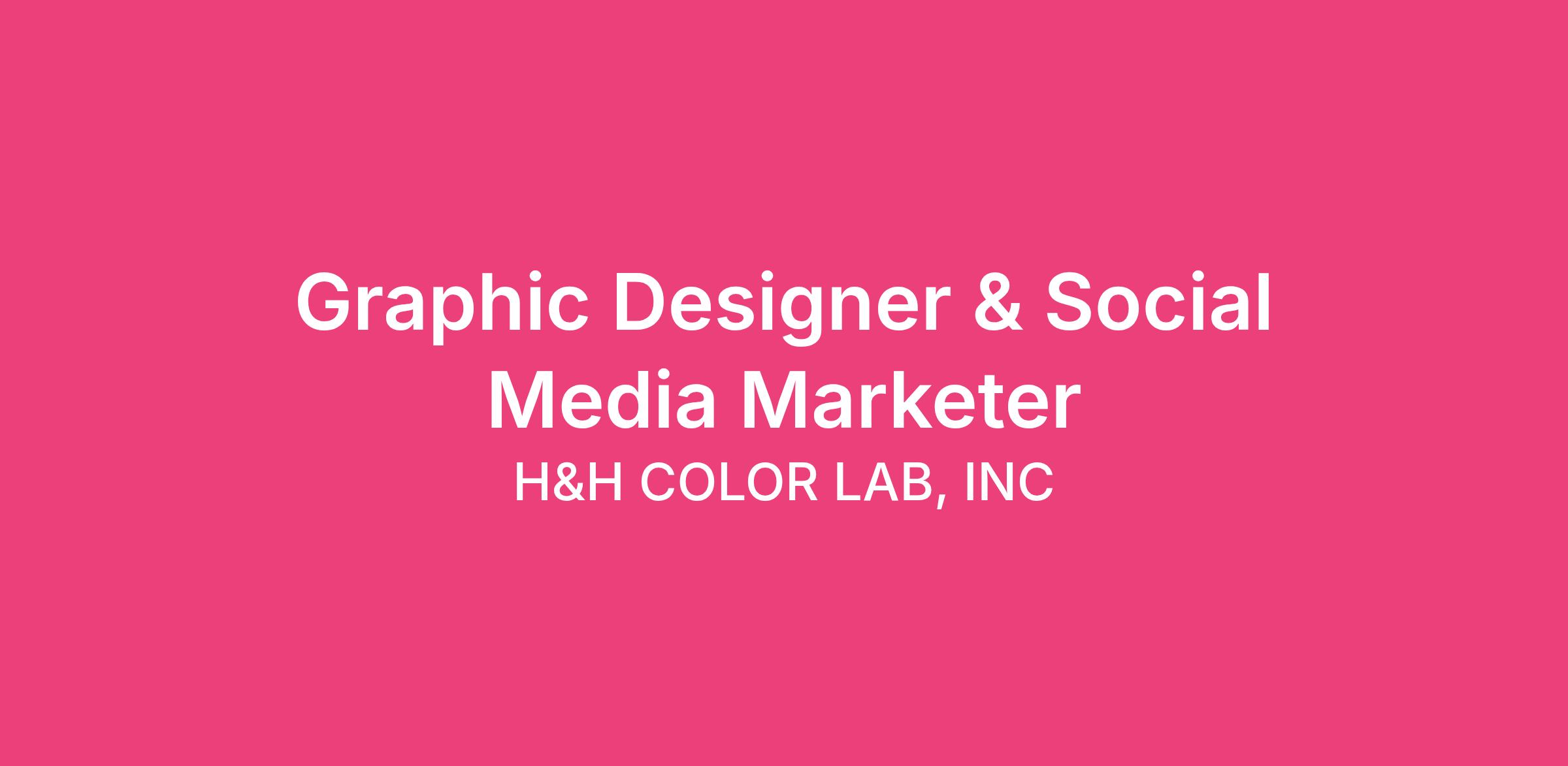 H&H Color Lab is seeking an in-house Graphic Designer and Social Media Marketer to work in our internal marketing and design department. You will be working in a small team where each player handles multiple responsibilities.