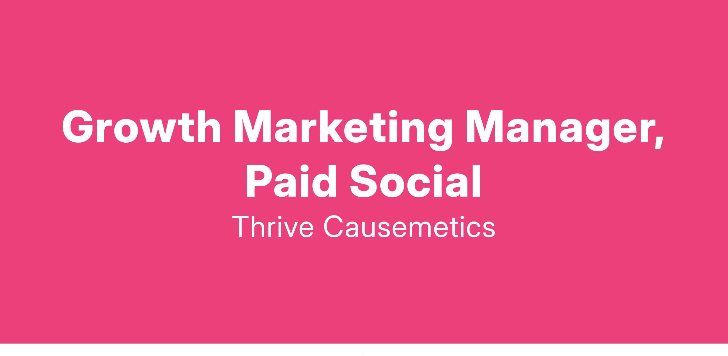 Thrive Causemetics is seeking an organized, motivated, and data-driven Growth Marketing Manager with a strong focus on Paid Social channels. This individual will be responsible for driving customer acquisition and performance marketing efforts, particularly through Paid Social platforms, while managing and mentoring a growing team. You will work cross-functionally with Marketing, Data, Customer Service, and CRM teams to execute growth strategies. The ideal candidate has experience in direct-to-consumer businesses, managing large-scale budgets, and a proven track record in managing performance marketing across Paid Social channels. This position reports directly to our Sr. Growth Marketing Manager.
