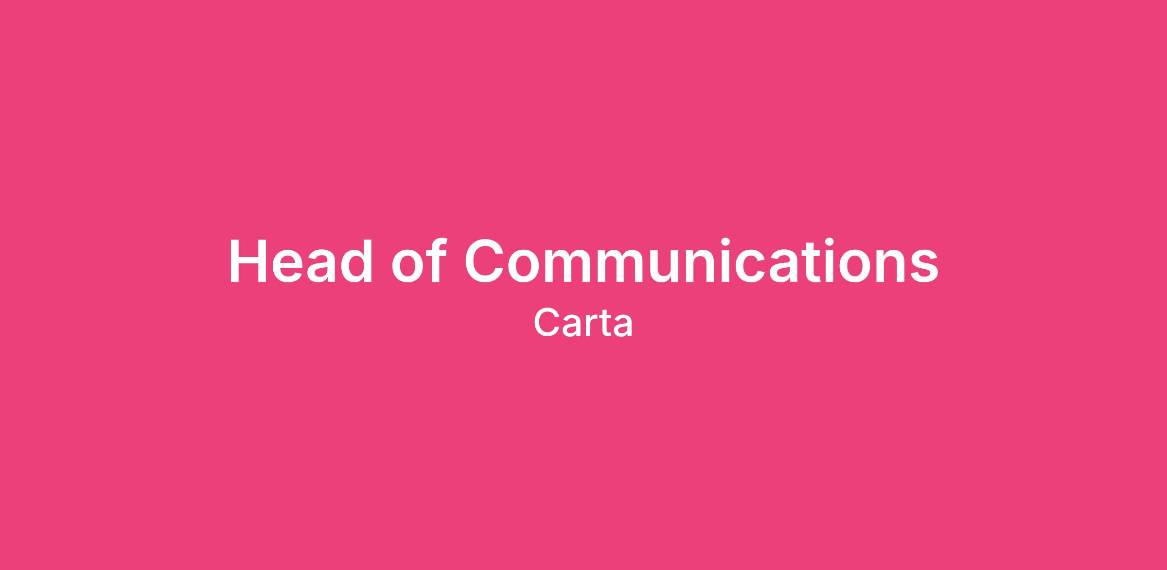 You’ll be leading Carta’s Communications Team reporting to the Chief Marketing Officer.