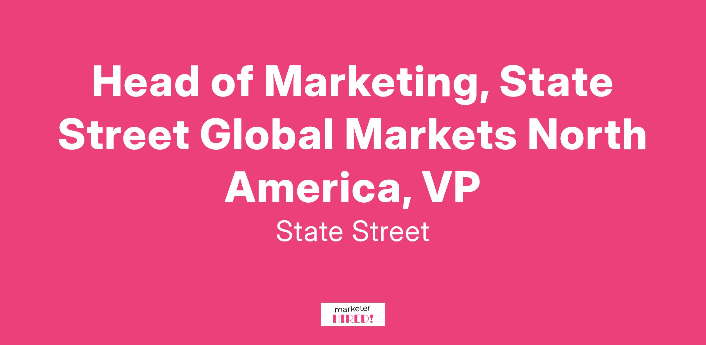 Head of Marketing, State Street Global Markets North America, VP