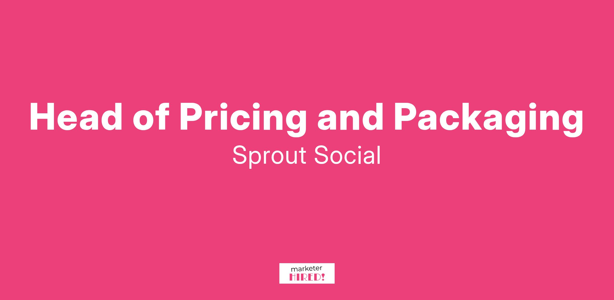 Sprout Social is hiring a Head of Pricing and Packaging to join the Marketing team. This role will report to the Vice President, Revenue Marketing.