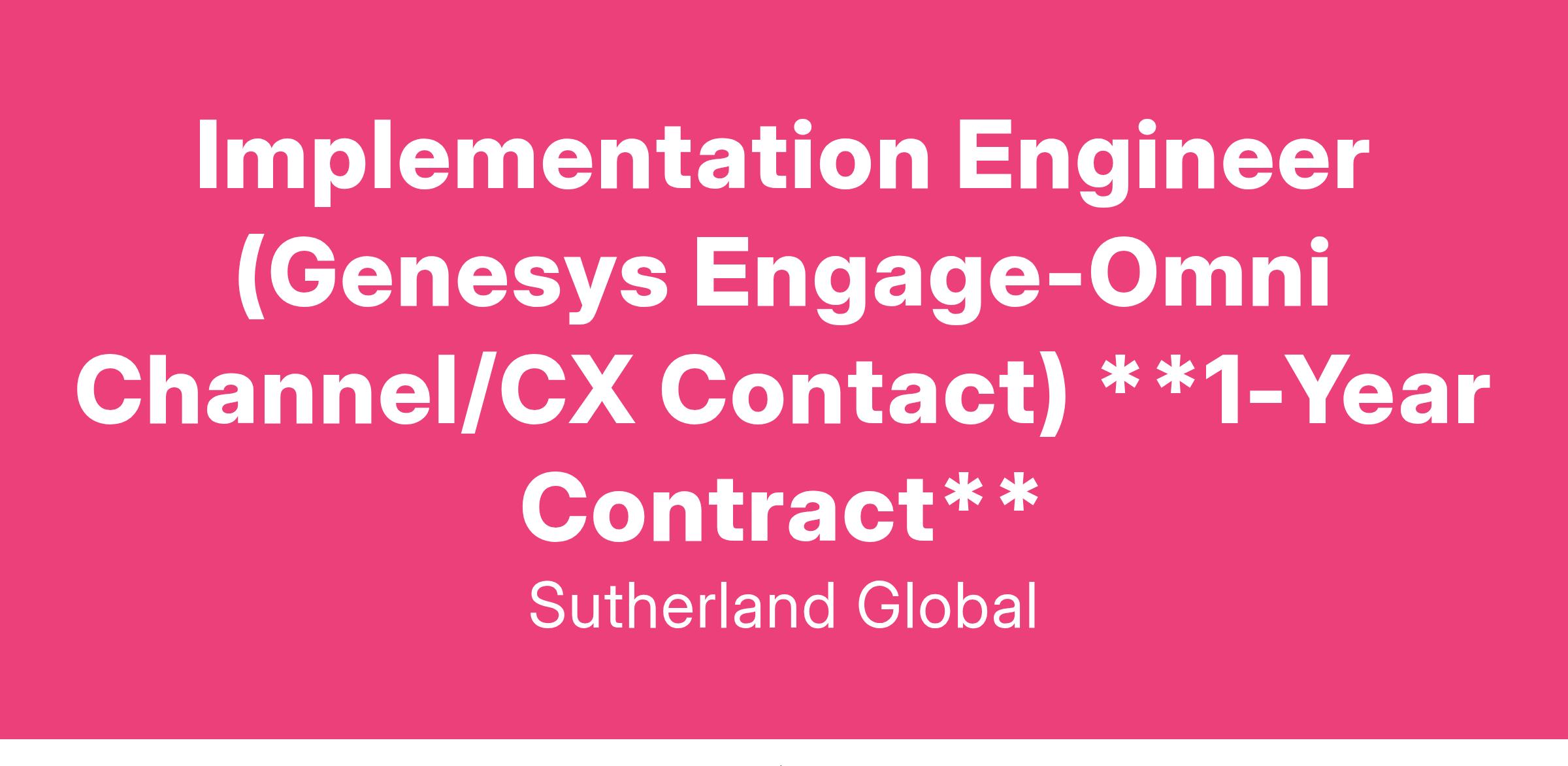 Sutherland is looking for a skilled Implementation Engineer (1-year contract role) with deep experience in the Genesys platform.