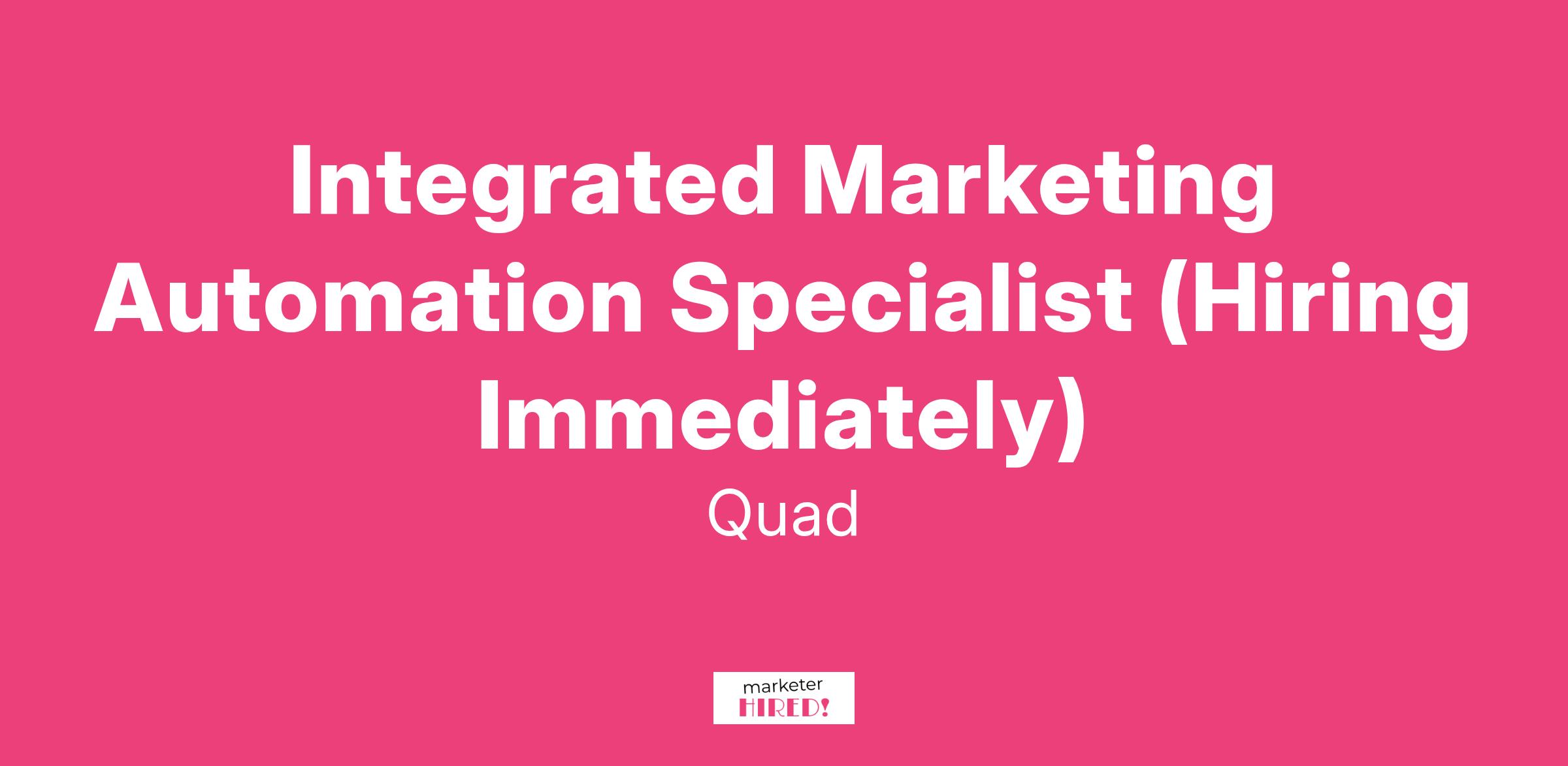 Integrated Marketing Automation Specialist (Hiring Immediately)