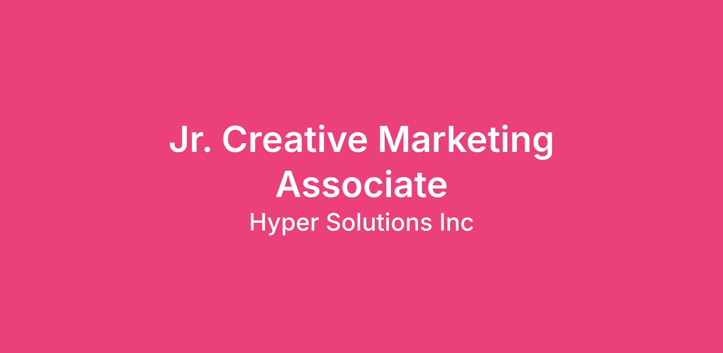 The Jr. Creative Marketing Associate at Hyper Solutions supports visual storytelling and creative execution across internal teams and the Satellite Manufacturing network. This role assists with graphic design, content creation, and creative production for internal communications, marketing initiatives, and special projects.