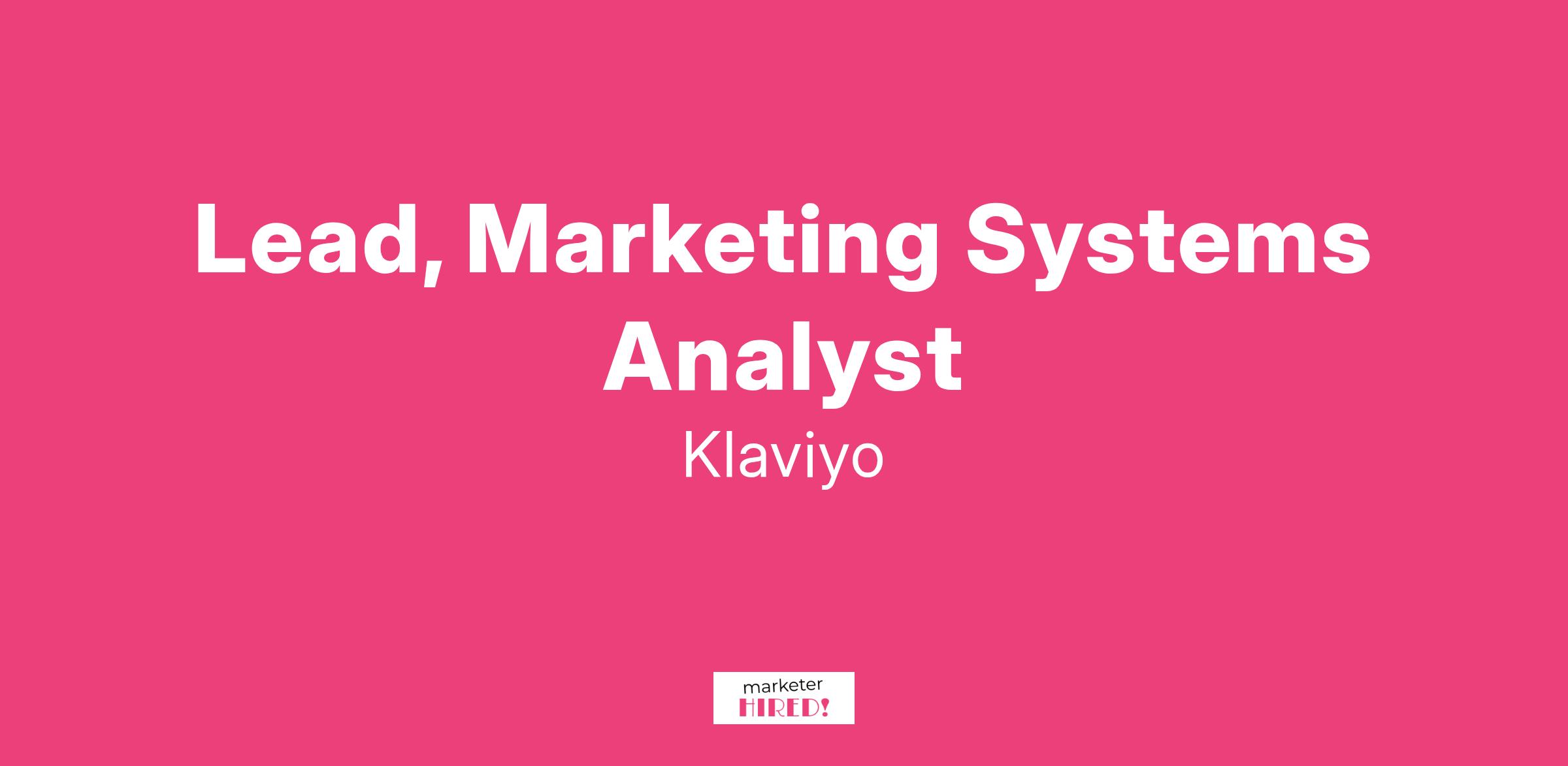 Klaviyo is seeking a dedicated and passionate professional to join the Marketing Operations team as the Lead, Marketing Systems Analyst.