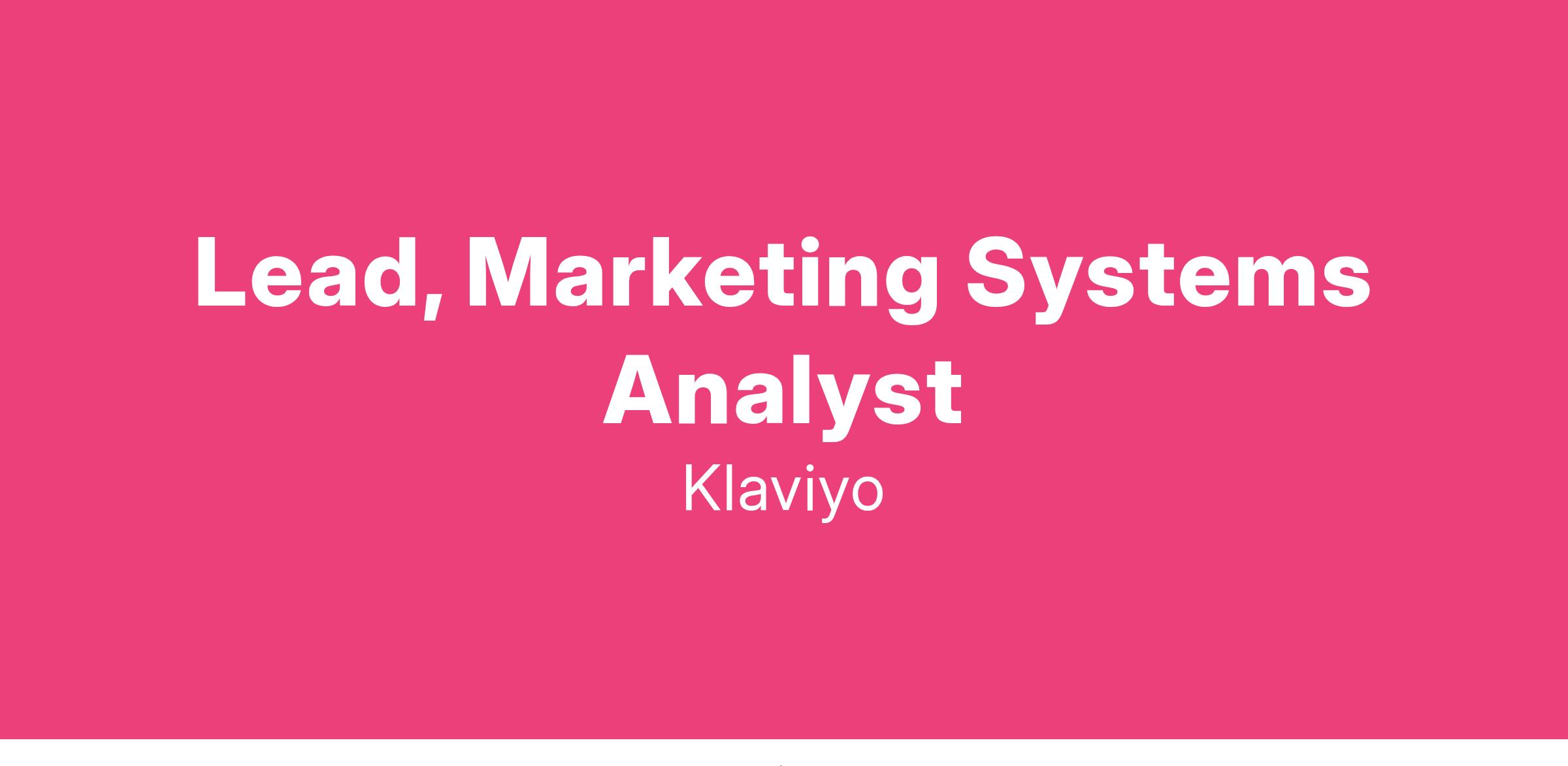 Klaviyo is seeking a dedicated and passionate professional to join the Marketing Operations team as the Lead, Marketing Systems Analyst.