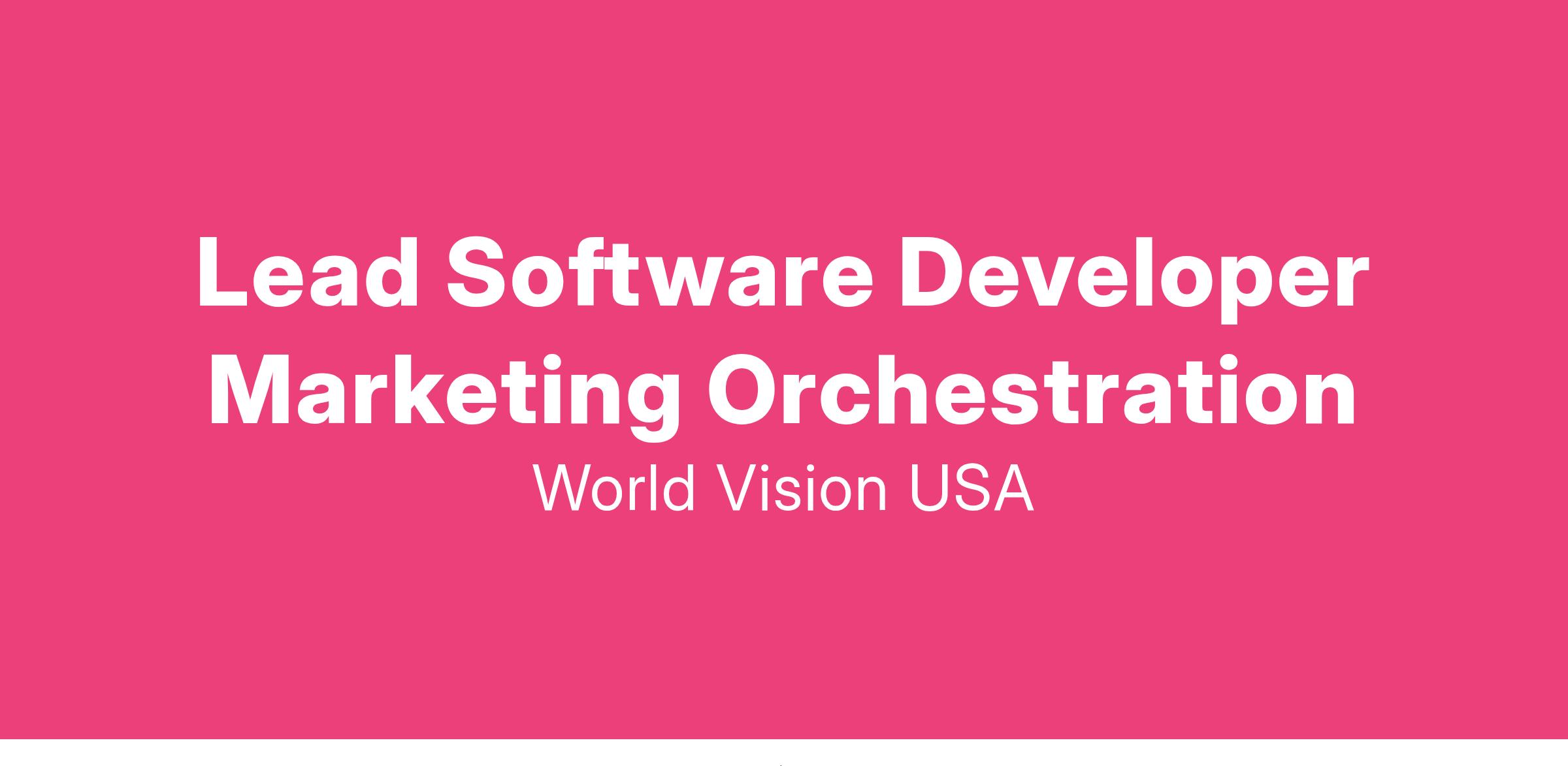 World Vision is now hiring for a Lead Software Developer, Marketing Orchestration .