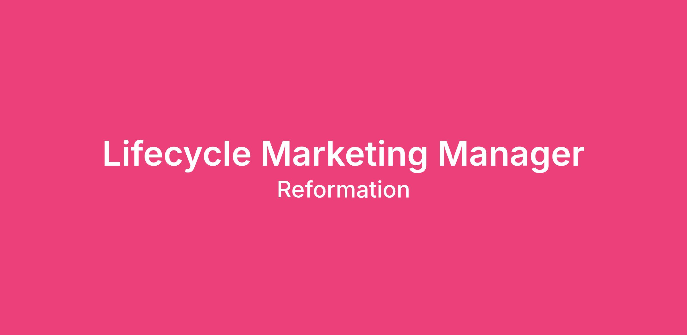 Reformation is looking for a Lifecycle Marketing Manager to join the Ecommerce & Growth organization to help architect the next evolution of our customer journeys.