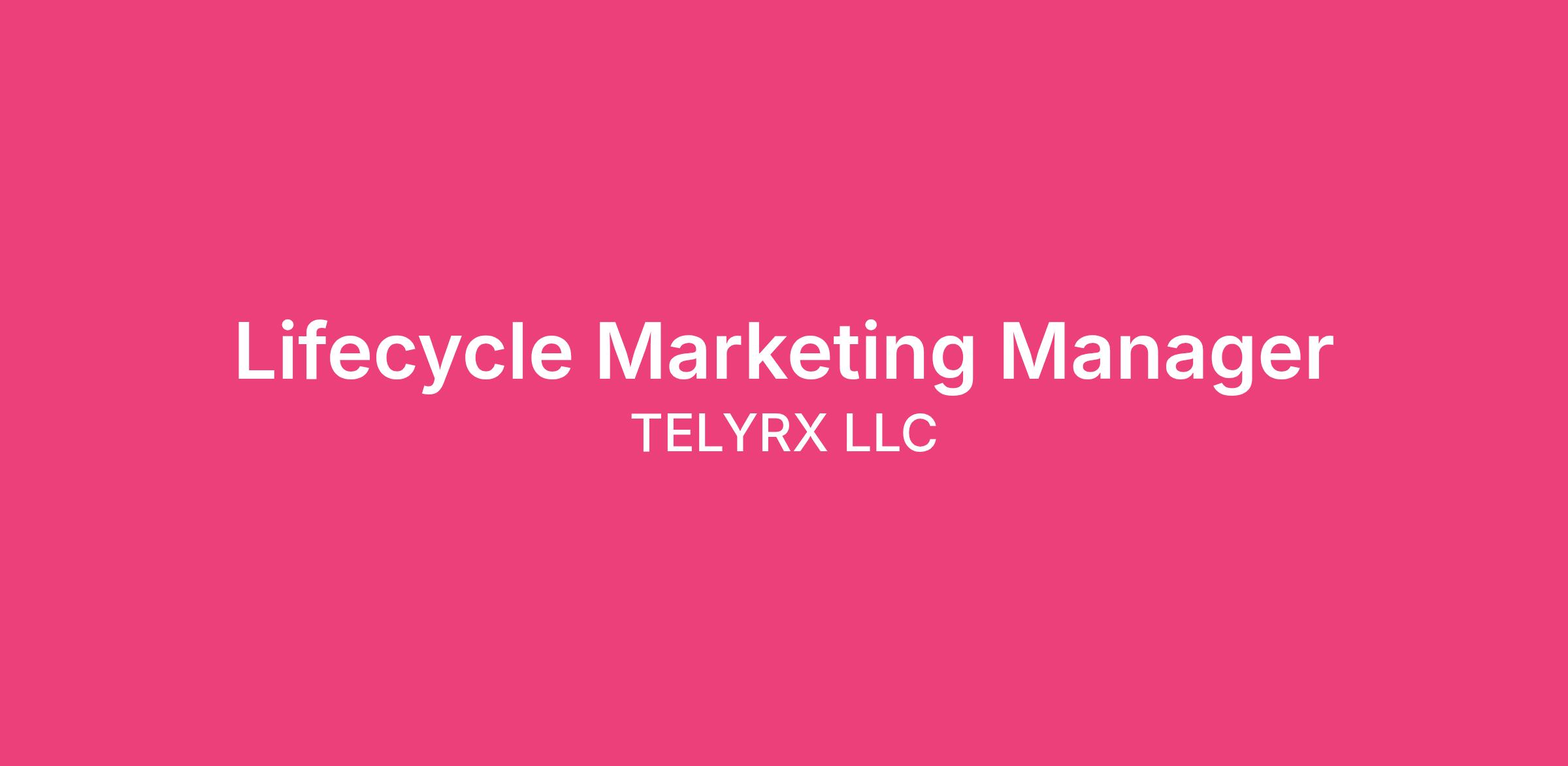 Lifecycle is one of the most critical growth levers at TelyRx. This role will: