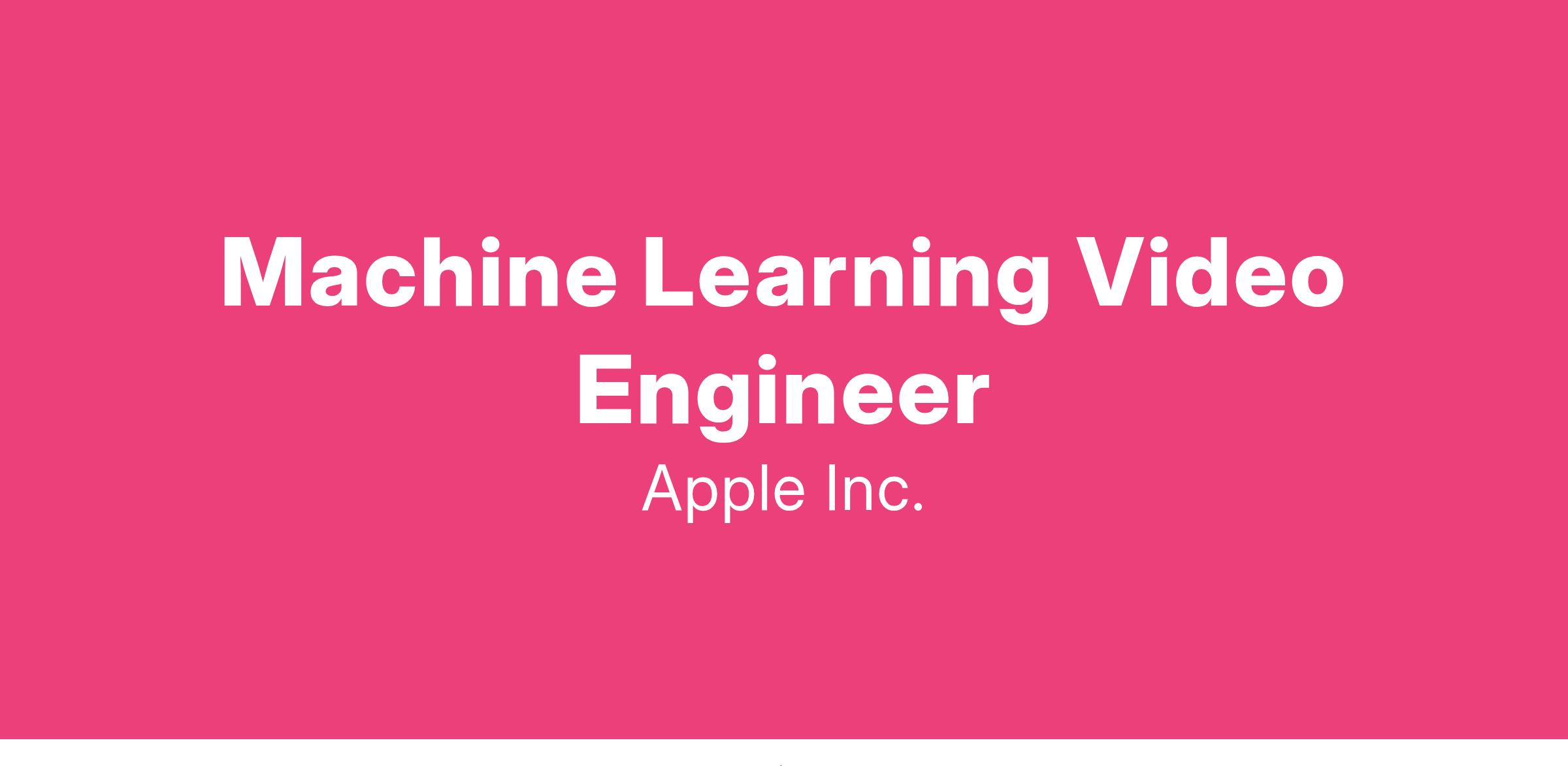 Want to work on cutting edge technology that keeps the customer front and center? The Video Engineering group at Apple is responsible for creating the image/video core technologies used in almost all Apple products and services. As a machine learning video engineer, you'll be developing machine learning based technologies for the image and video domain. As a member of a fast-paced team, you will also have the unique and exciting opportunity to shape upcoming products that have direct customer impact and will delight and inspire millions of people every day!