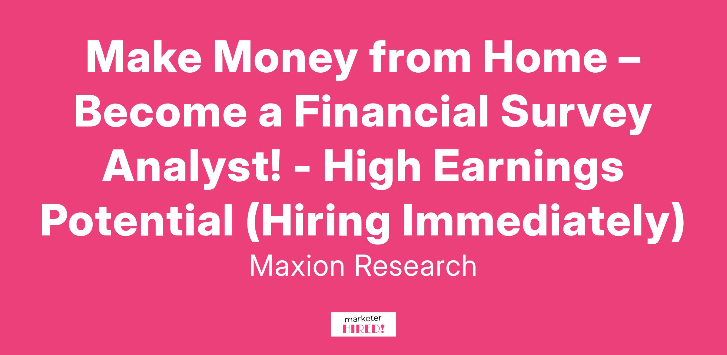 Make Money from Home – Become a Financial Survey Analyst! - High Earnings Potential (Hiring Immediately)