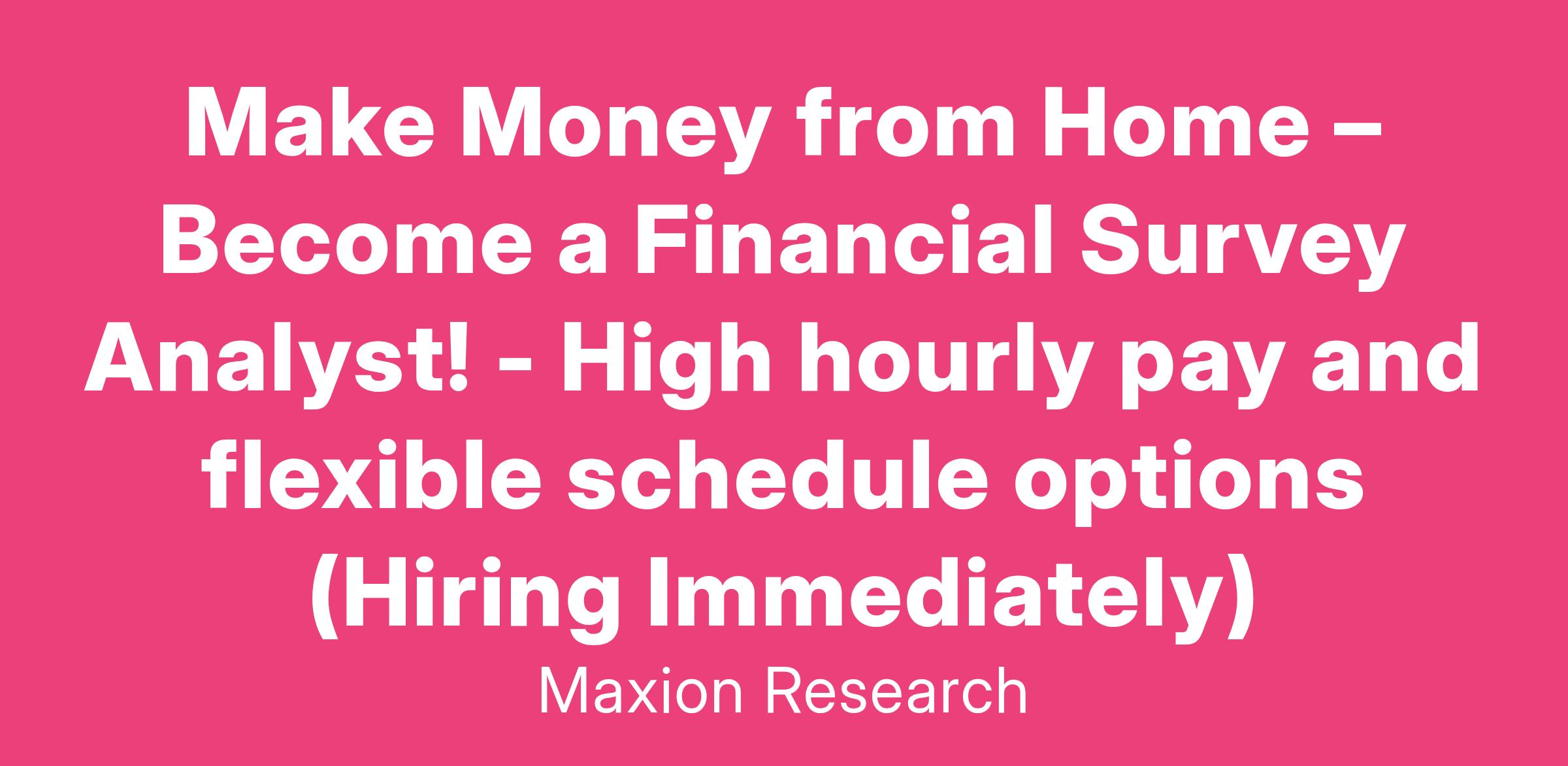 Make Money from Home – Become a Financial Survey Analyst! - High hourly pay and flexible schedule options (Hiring Immediately)