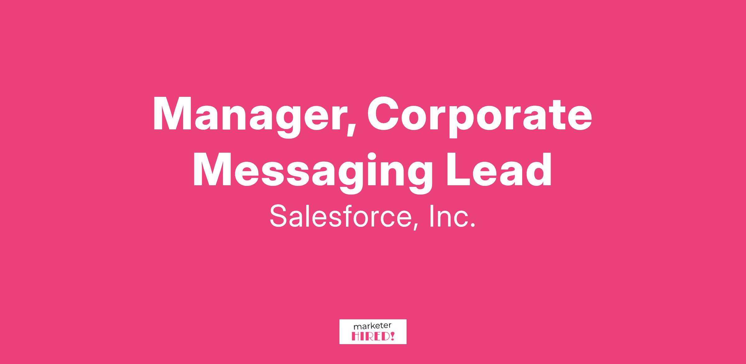 Manager, Corporate Messaging LeadApply remote type Office - Flexible locations California - San Francisco Illinois - Chicago New York - New York time type Full time posted on Posted 11 Days Ago job requisition id JR282129