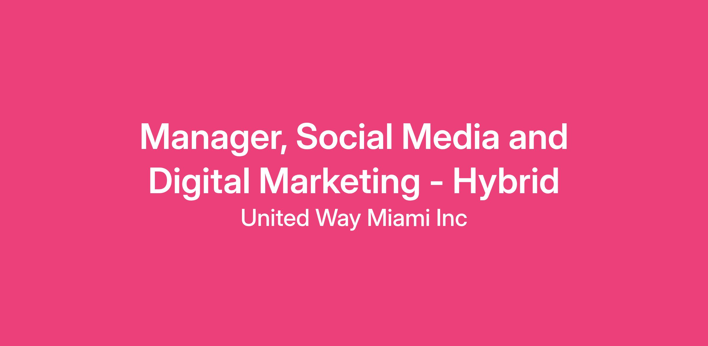 United Way Miami, Inc. is hiring a Manager, Social Media and Digital Marketing to join our team. As a Manager, Social Media and Digital Marketing, you will be responsible for managing and implementing social media strategy with written and visual content to foster community participation and spark engagement. Utilize social and digital media to advance UWMβs brand, broaden awareness of its programs and initiatives, leverage relationships with business-to-consumer and business-to-business audiences, generate leads, and achieve core business objectives.