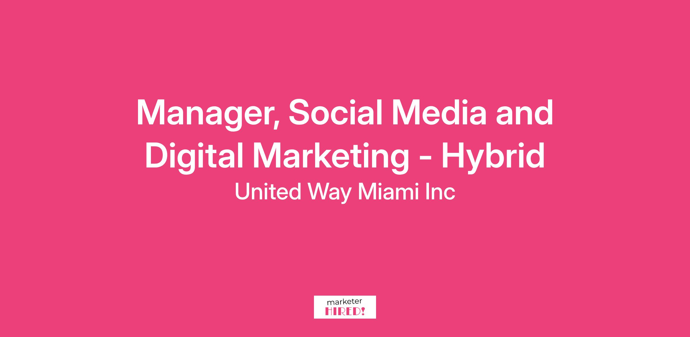 United Way Miami, Inc. is hiring a Manager, Social Media and Digital Marketing to join our team. As a Manager, Social Media and Digital Marketing, you will be responsible for managing and implementing social media strategy with written and visual content to foster community participation and spark engagement. Utilize social and digital media to advance UWMβs brand, broaden awareness of its programs and initiatives, leverage relationships with business-to-consumer and business-to-business audiences, generate leads, and achieve core business objectives.
