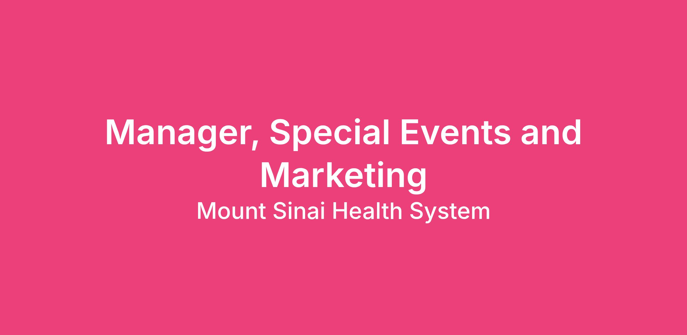 The Manager for Special Events and Marketing (Manager) reports to the Director