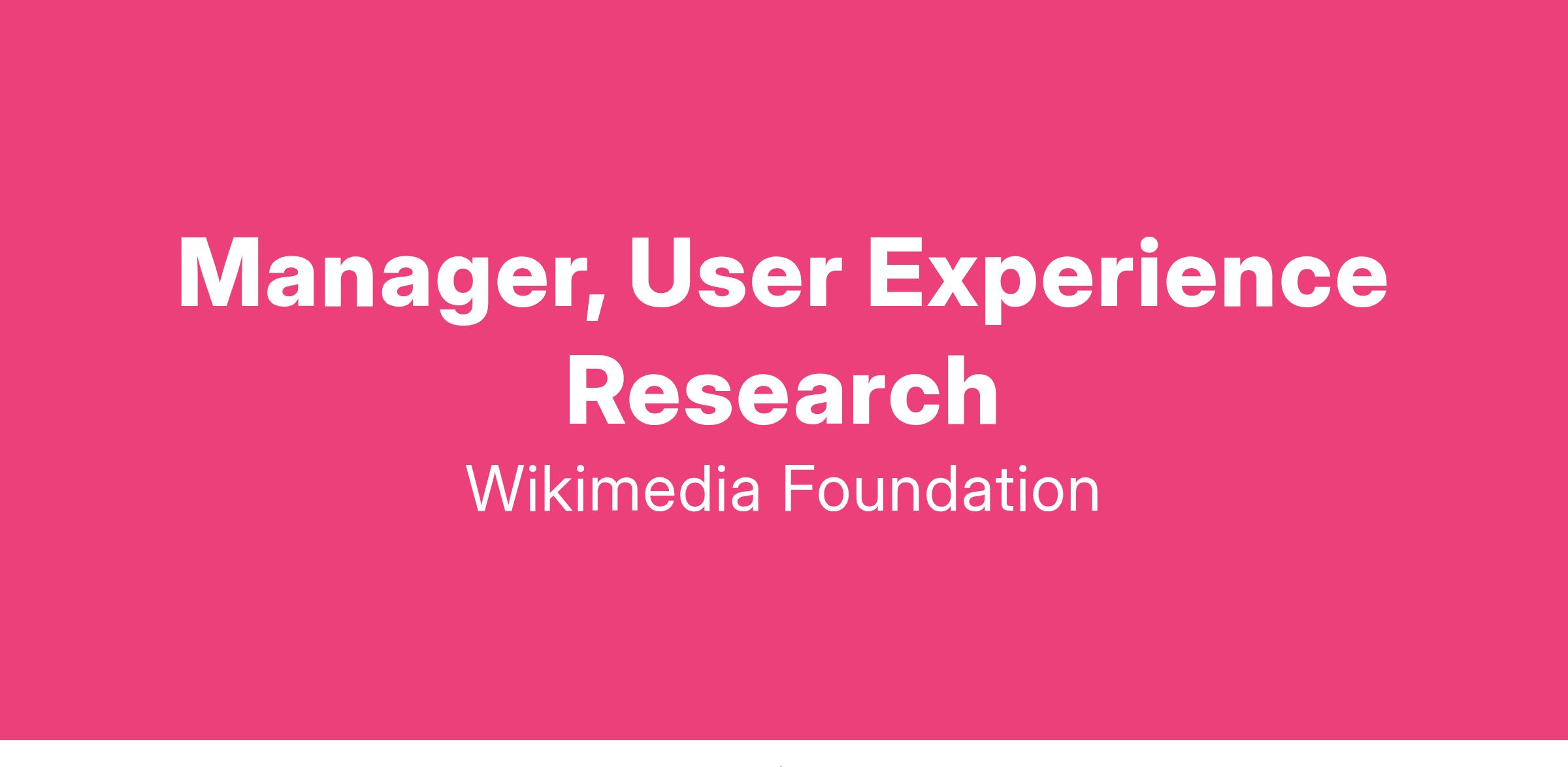 We’re hiring a UX Research Manager strongly committed to the principles of free knowledge, human-centered research, open source and open data, transparency, privacy, and collaboration to join the Research team. As our UX Research Manager you will be leading and supporting a small and talented team of design researchers and a program manager to oversee research that informs and advances Wikipedia’s product, technology, and design developments across more than 300 languages.