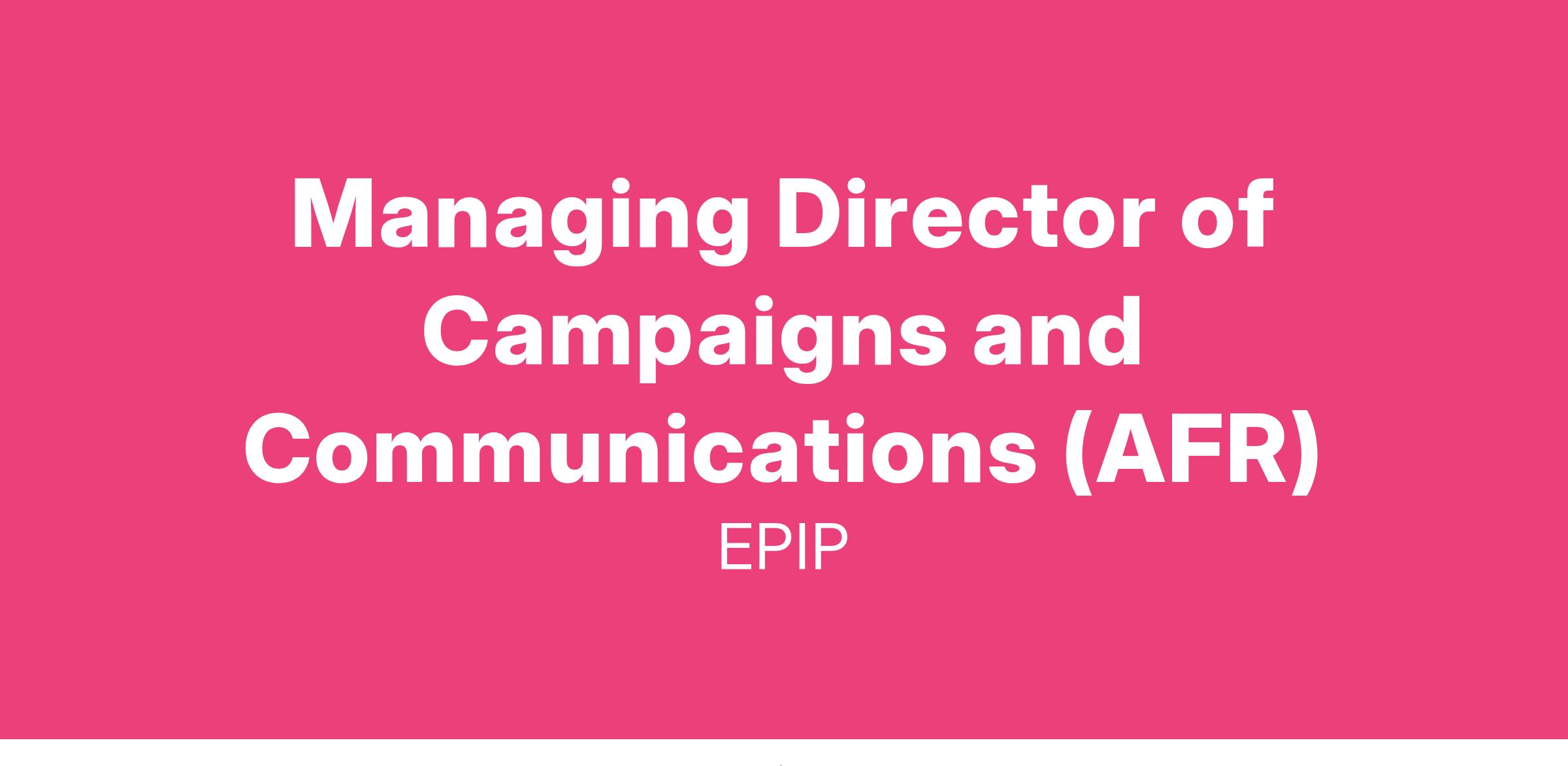 AFREF invites nominations and applications for a Managing Director of Campaigns and Communications. As a key member of the senior leadership team and reporting to the Executive Director, the Managing Director will lead campaigns and communications work to increase our impact and capacity to drive change. She/he/they will partner with AFREF’s leadership to build connectivity within teams, across the organization, and with coalition partners and will bring an inclusive management style that supports staff members to achieve their highest potential and is grounded in principles of equity and inclusion.