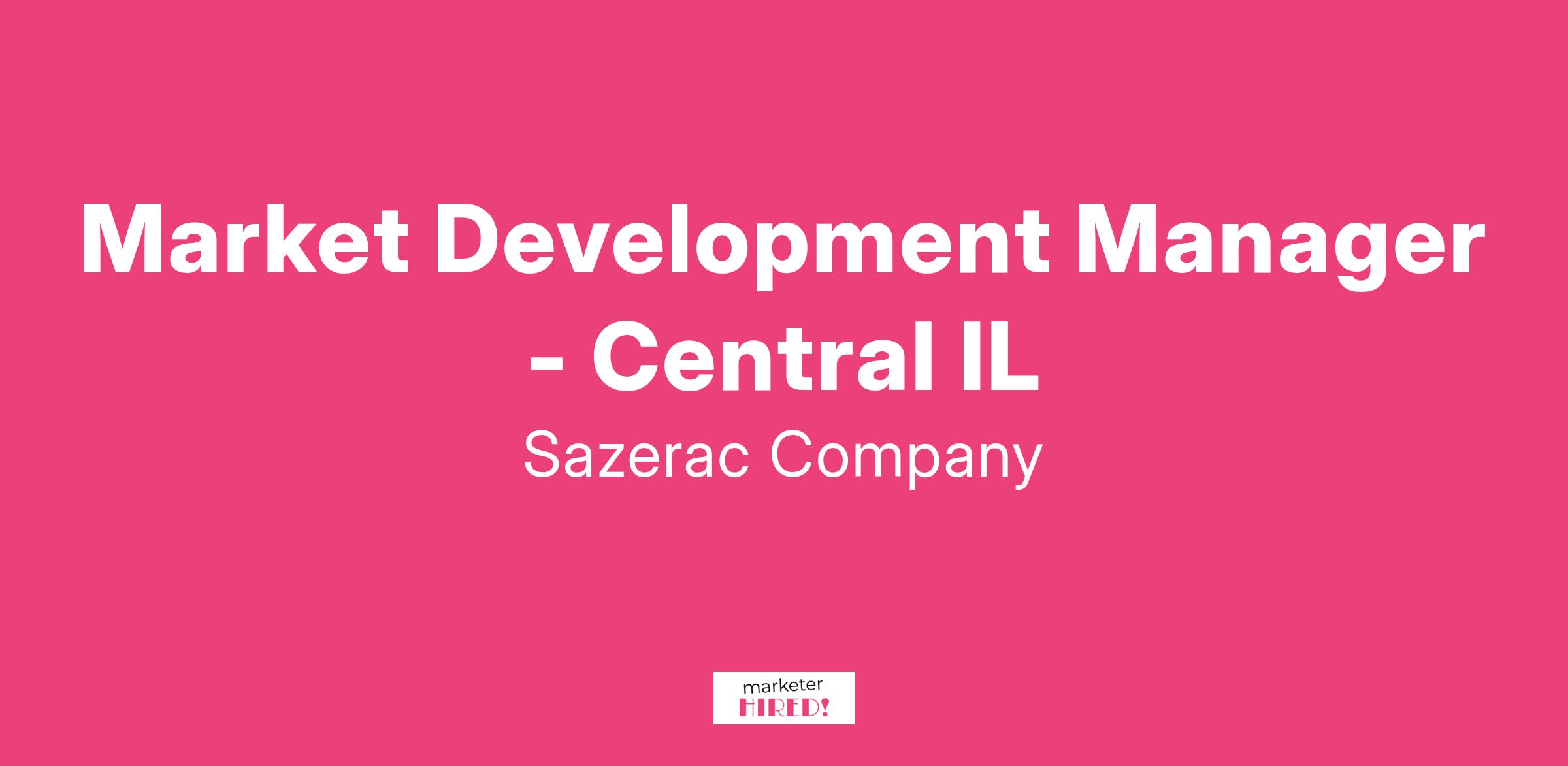 The Market Development Manager- Central IL is a field leader that will manage a team of Market Development Representatives to drive results in on and off premise accounts. This role will develop and execute Impact Selling programs to drive key sales objectives in their markets.Sazerac is exponentially growing our U.S. salesforce as part of a strategic company expansion. This is an opportunity to lead a best in class sales team to build brands and drive results in the field!Additional responsibilities for the Market Development Manager include:Lead and manage a team of Market Development Representatives to build brands, maximize distribution, solve customer challenges and maximize Sazerac merchandising and space-to-sales.Motivate and develop internal and wholesale team in delivering brand and individual goals.Establish and implement strategic programs to guide distribution, innovative launches, displays, feature ads, and retail promotions that produce effective presentation of the brand state priorities.Achieve volume objectives for the brand state priorities.Plan and execute consistent sales calls with key accounts.Develop, implement and monitor agreed upon Key Performance Indicators (KPI's) as it relates to their team.Work with internal teams to course correct any brands that are off brand state priority plan.Qualifications/Requirements: