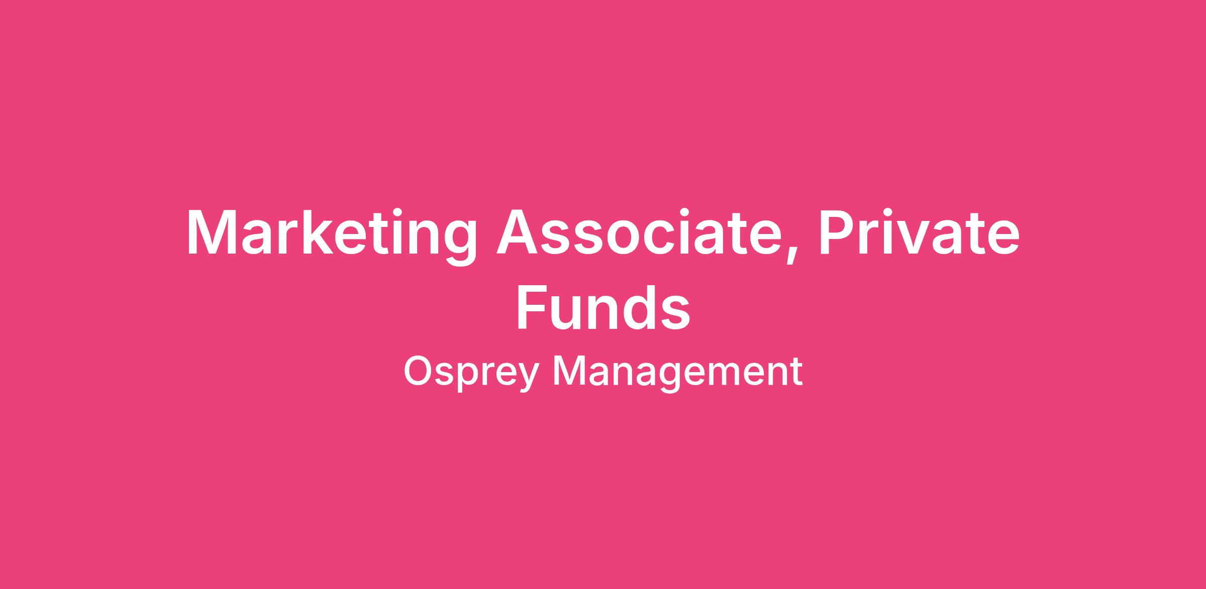 Marketing Associate, Private Funds