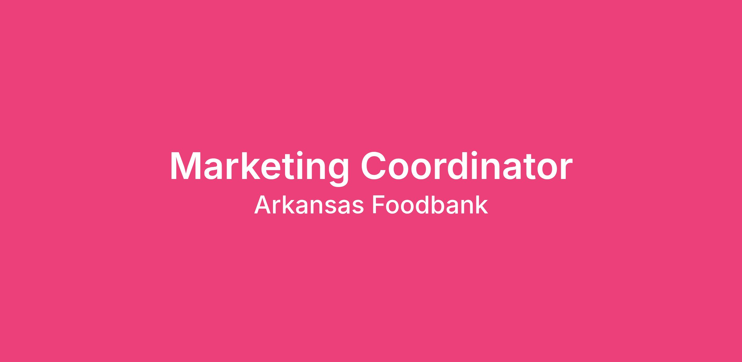 The Marketing Coordinator will be comfortable learning new technology, as well as an eagerness to utilize Arkansas Foodbank software systems. They will possess strong interpersonal skills, a spirit of collaboration and teamwork, and a commitment to hunger relief.