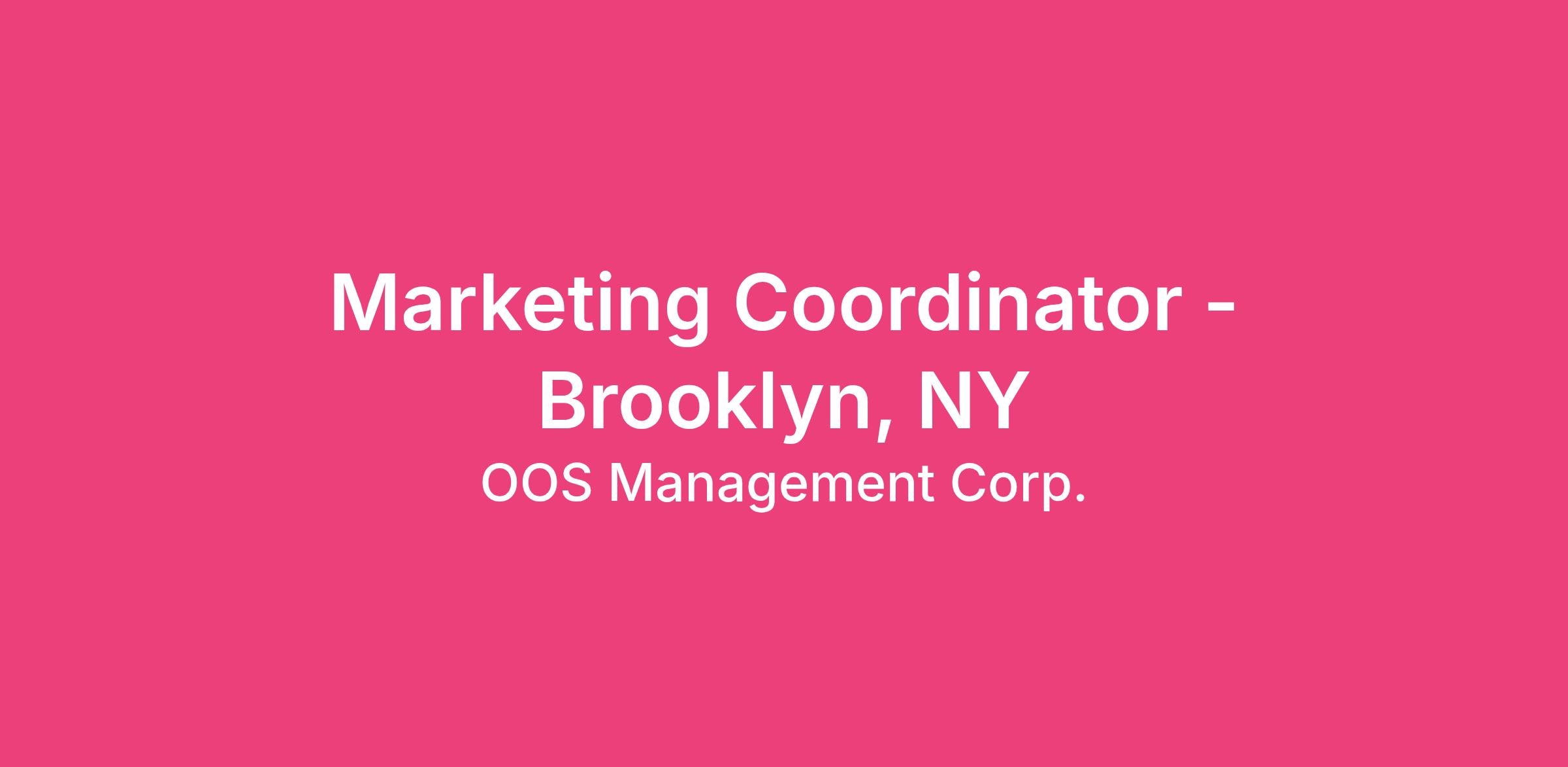 Marketing Coordinator - Brooklyn, NY