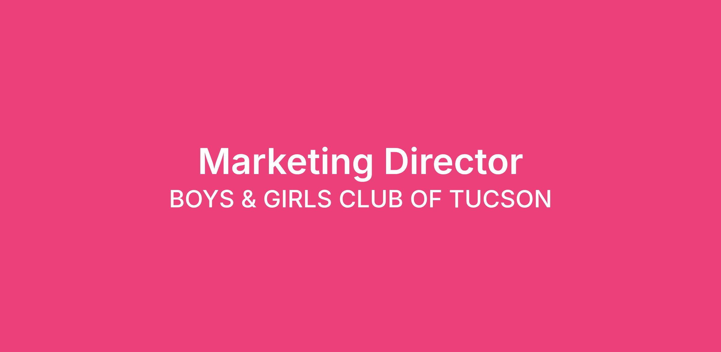 Reporting to the President & CEO, the Marketing Director leads the development and execution of the organization’s marketing and communications strategy to elevate the Boys & Girls Clubs of Tucson brand and expand awareness of its mission and programs. This role is responsible for promoting youth programming, strengthening community engagement, and supporting fundraising initiatives through strategic communications, digital media, and storytelling.