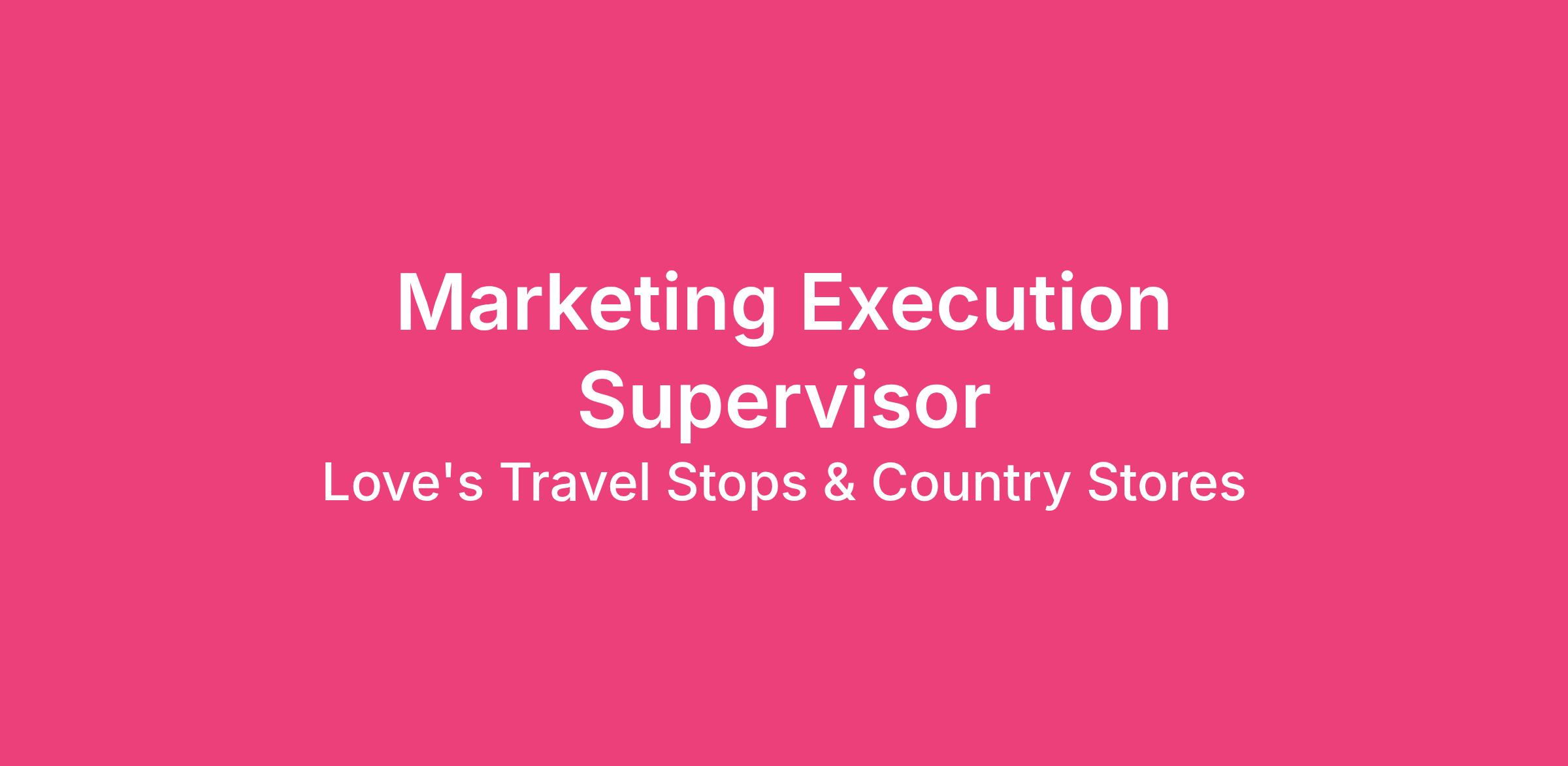 Welcome to Love's! Our Marketing team is seeking an experienced Marketing Execution Supervisor to lead the implementation of complex marketing initiatives while collaborating closely with internal business units. This role manages projects from inception to completion, ensuring alignment with brand and business goals, and provides leadership across digital, print, and in-store marketing campaigns. The position requires independent decision-making, establishes execution standards, and contributes to enhancing consistency and process efficiency throughout marketing workflows.