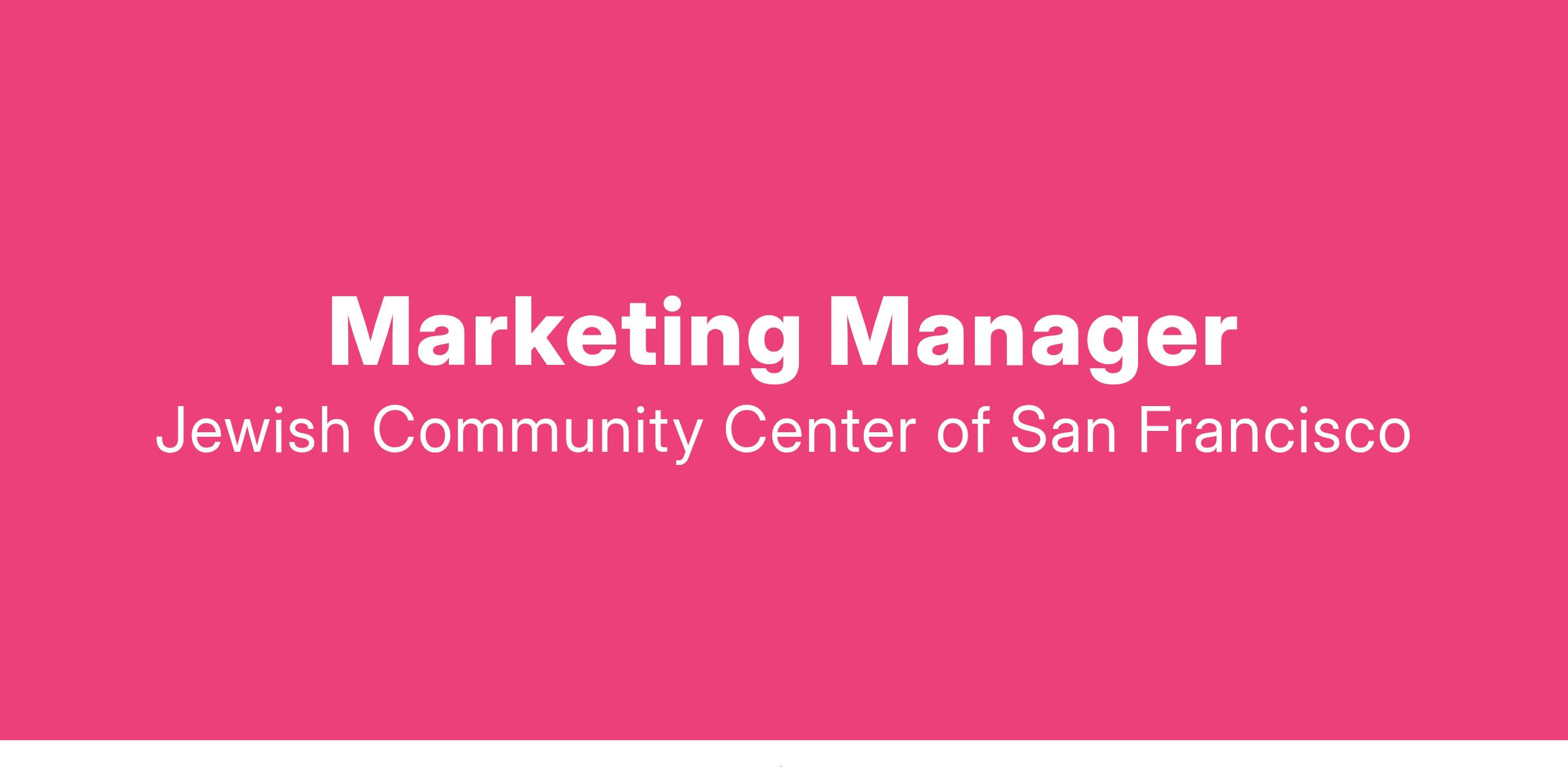 The Marketing Manager develops consumer marketing and communication strategies for select businesses and services of the JCCSF. This includes planning and executing integrated, strategic marketing campaigns for the full suite of Youth & Family and Jewish Life programs at the JCCSF. Specific programs may vary.