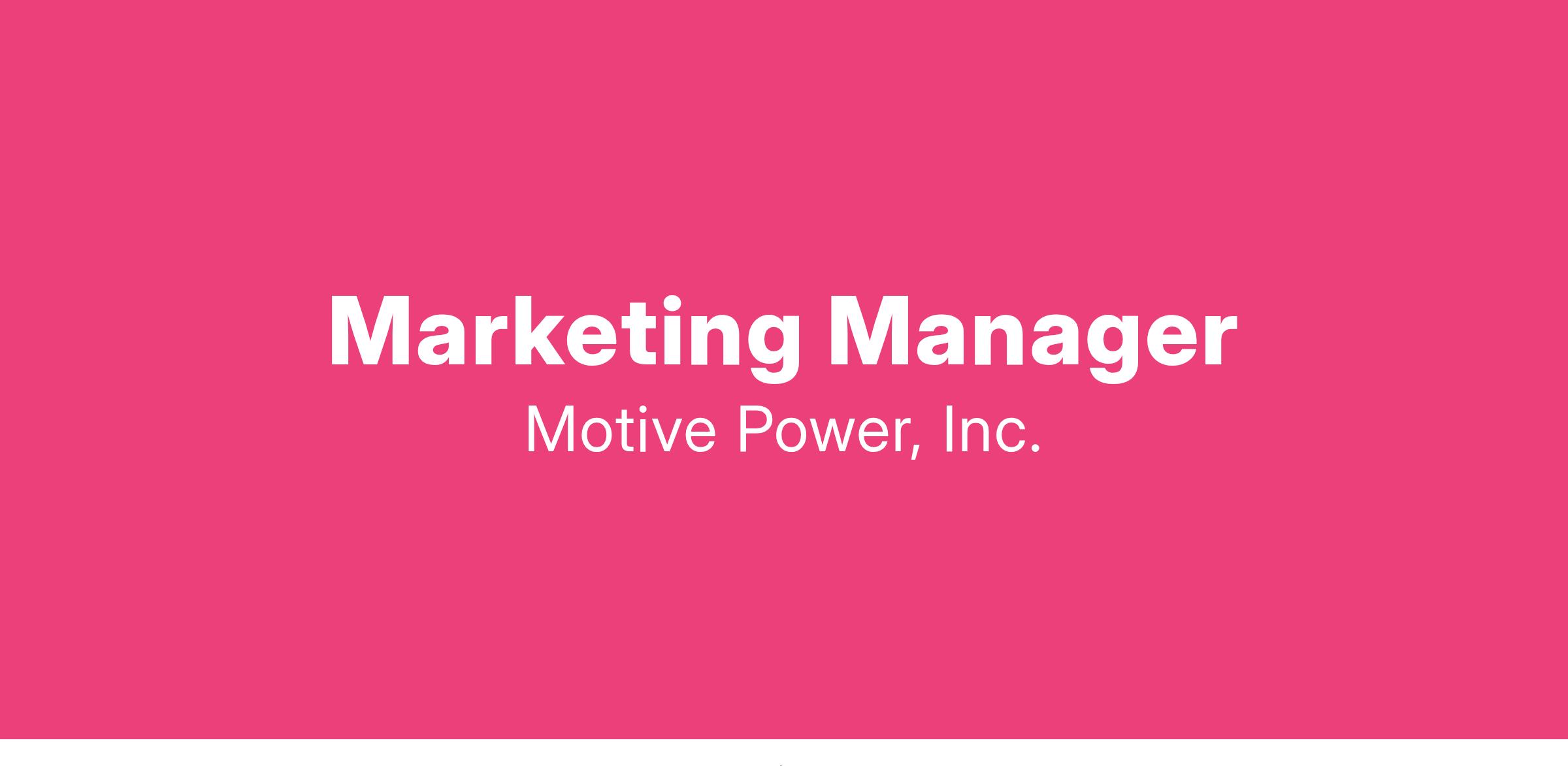 Motive Power, Inc. is looking for a Marketing Manager in San Francisco, CA.