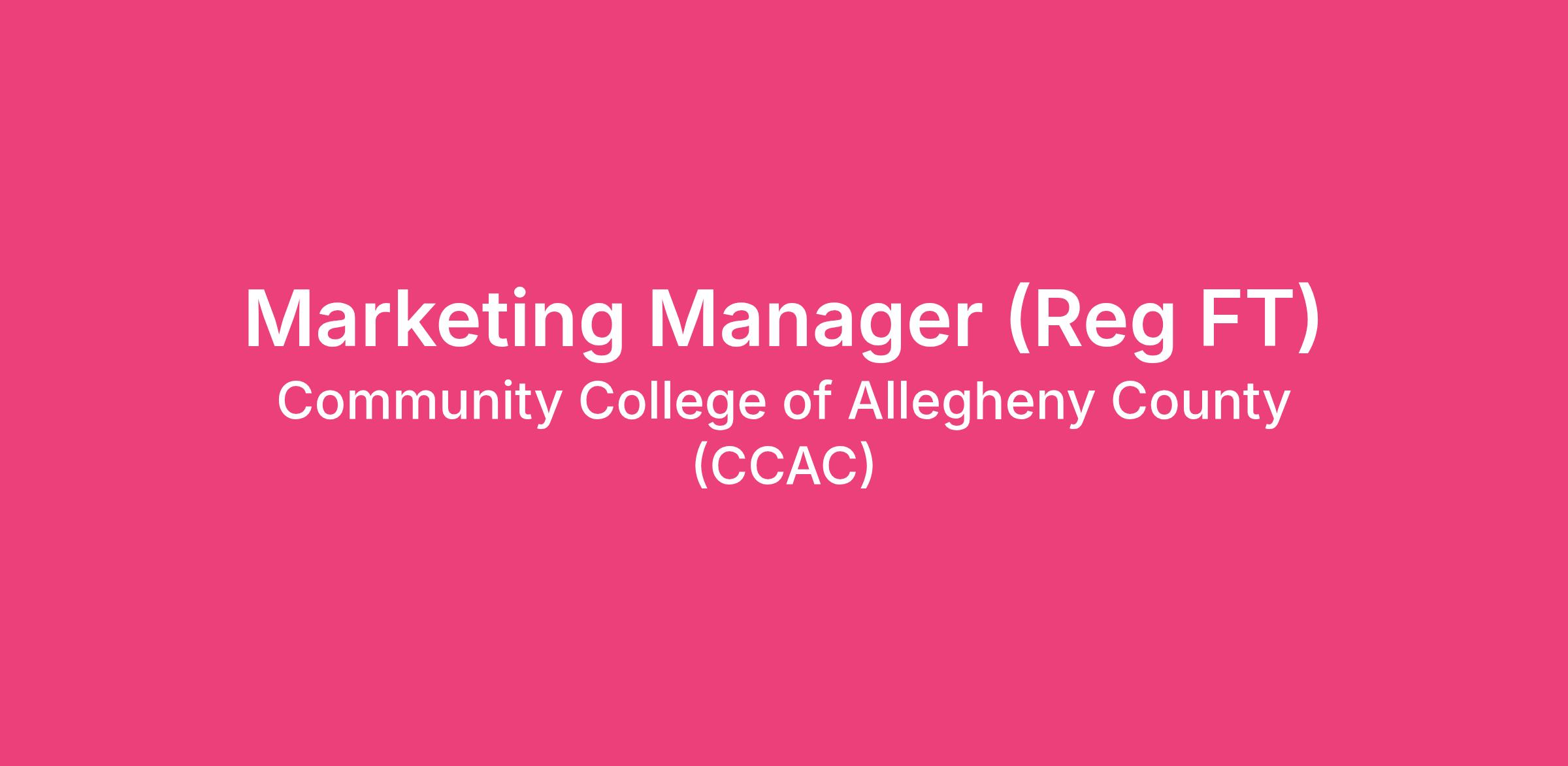 Position Title: Marketing Manager (Reg FT)