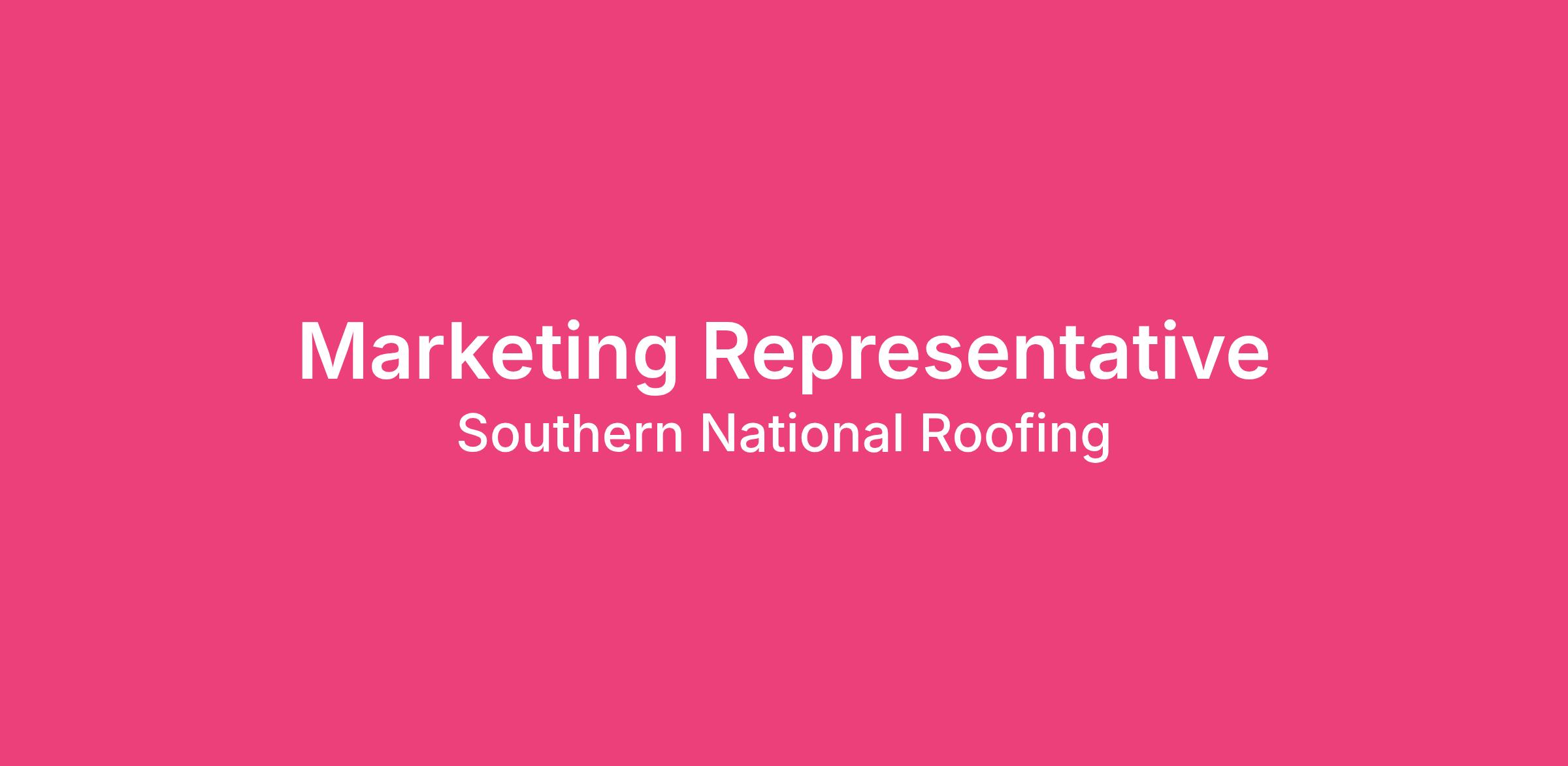 Southern National Roofing is a $20M+ residential roofing company hiring full-time Direct Marketing Representatives for our local office.