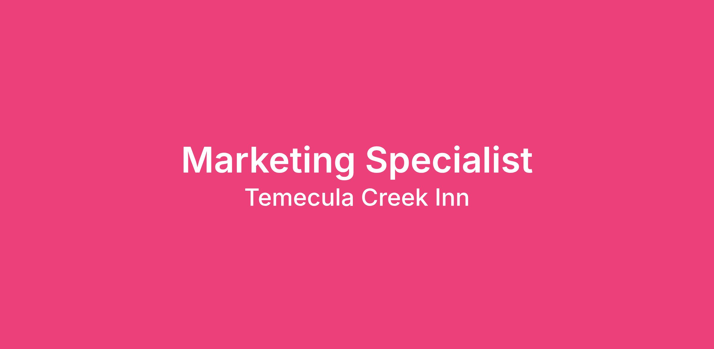 Essential Purpose: The Marketing Specialist supports the execution of marketing initiatives across Temecula Creek Inn and its outlets, including Corkfire Kitchen, Temecula Creek Golf Club, Temecula Creek Weddings, and Meetings at Temecula Creek Inn. The role focuses on campaign execution, content development, digital marketing support, internal communications, and brand management.