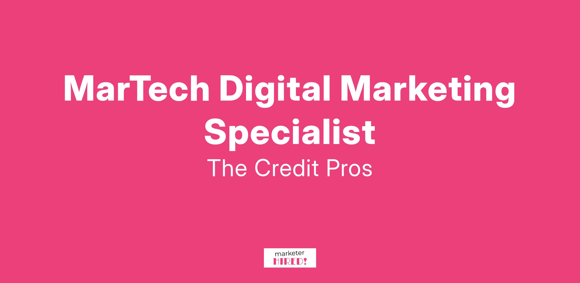 The Credit Pros is seeking a MarTech Digital Marketing Specialist to create and deliver data-driven, integrated customer experiences inside the marketing technology stack. This is a hands-on, roll-up-your-sleeves role for a doer who thrives on execution, not just strategy. You will actively manage ad spend, optimize conversion rates, automate email marketing, and analyze performance data to drive measurable results. You'll collaborate with cross-functional teams to align digital efforts with business goals, stay ahead of industry trends, and execute strategies that maximize brand visibility and customer engagement. If you love diving into the details, making things happen, and seeing the direct impact of your work, we want to hear from you!