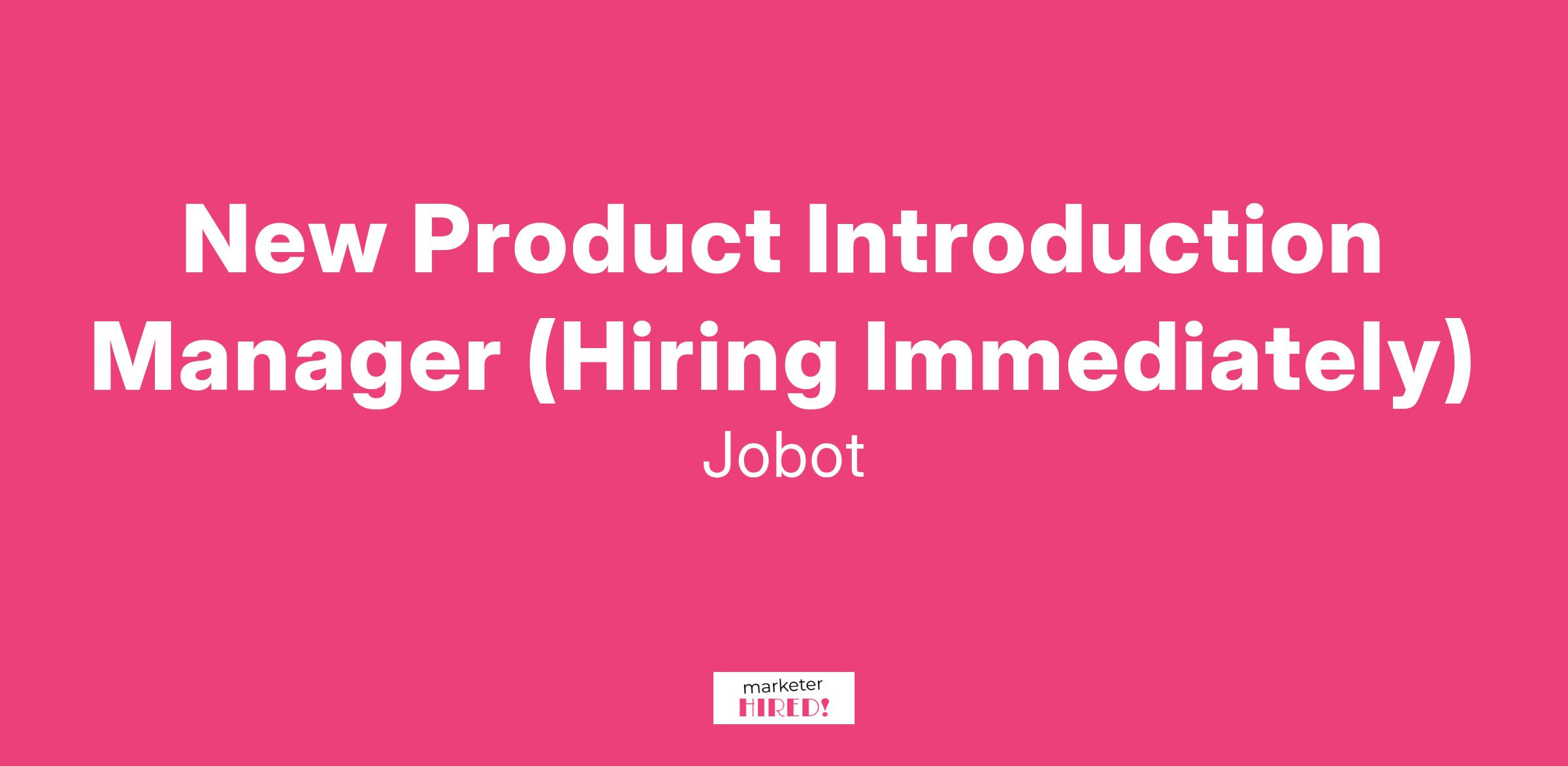 New Product Introduction Manager (Hiring Immediately)