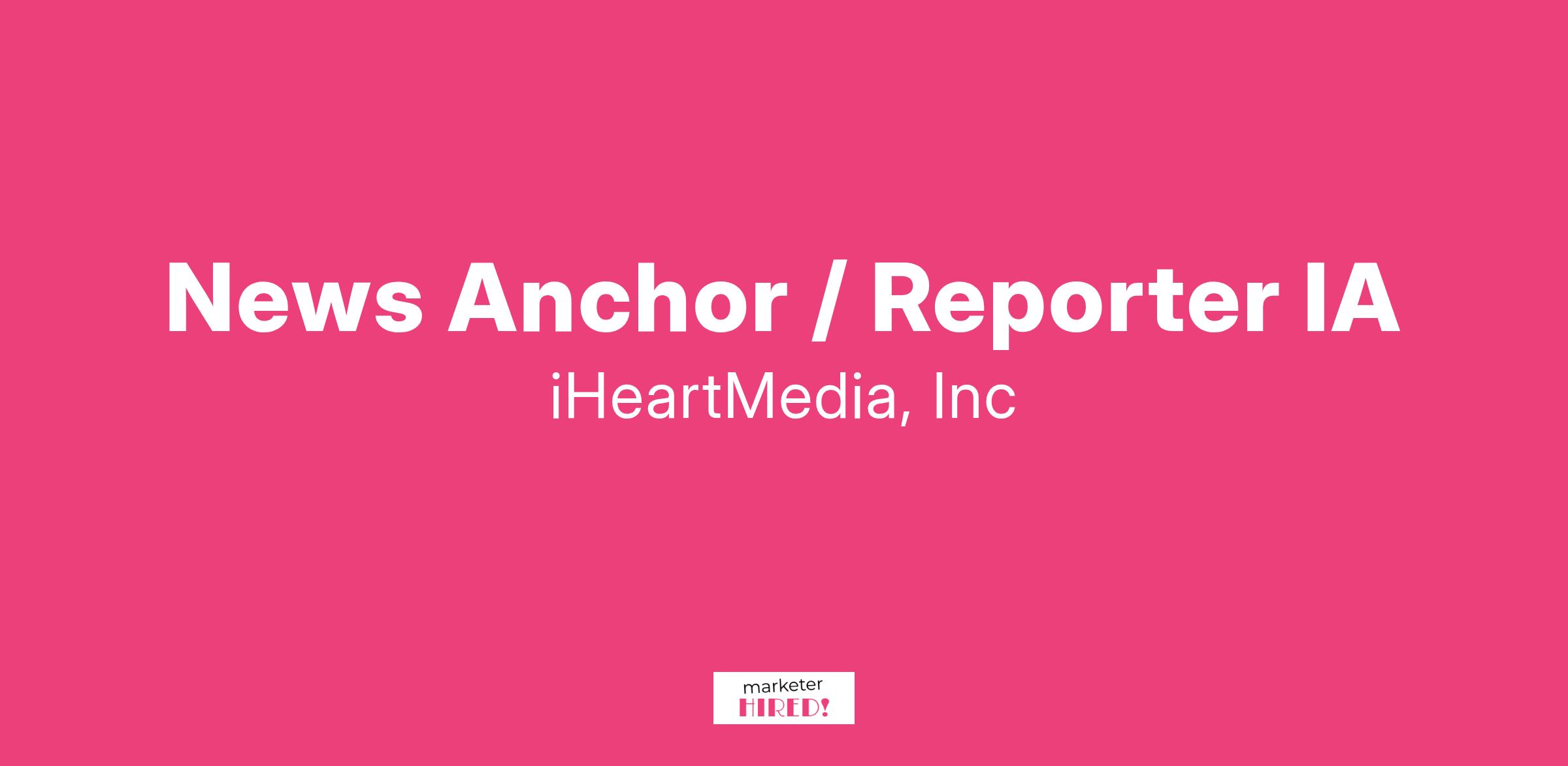 What We Need:We are seeking an experienced Radio News Anchor and Reporter with a clear voice and engaging delivery, excellent writer, motivated and passionate about news.What You'll Do:Responsible for gathering, creating and distributing text and audio content to radio stations, websites and other platforms as required.