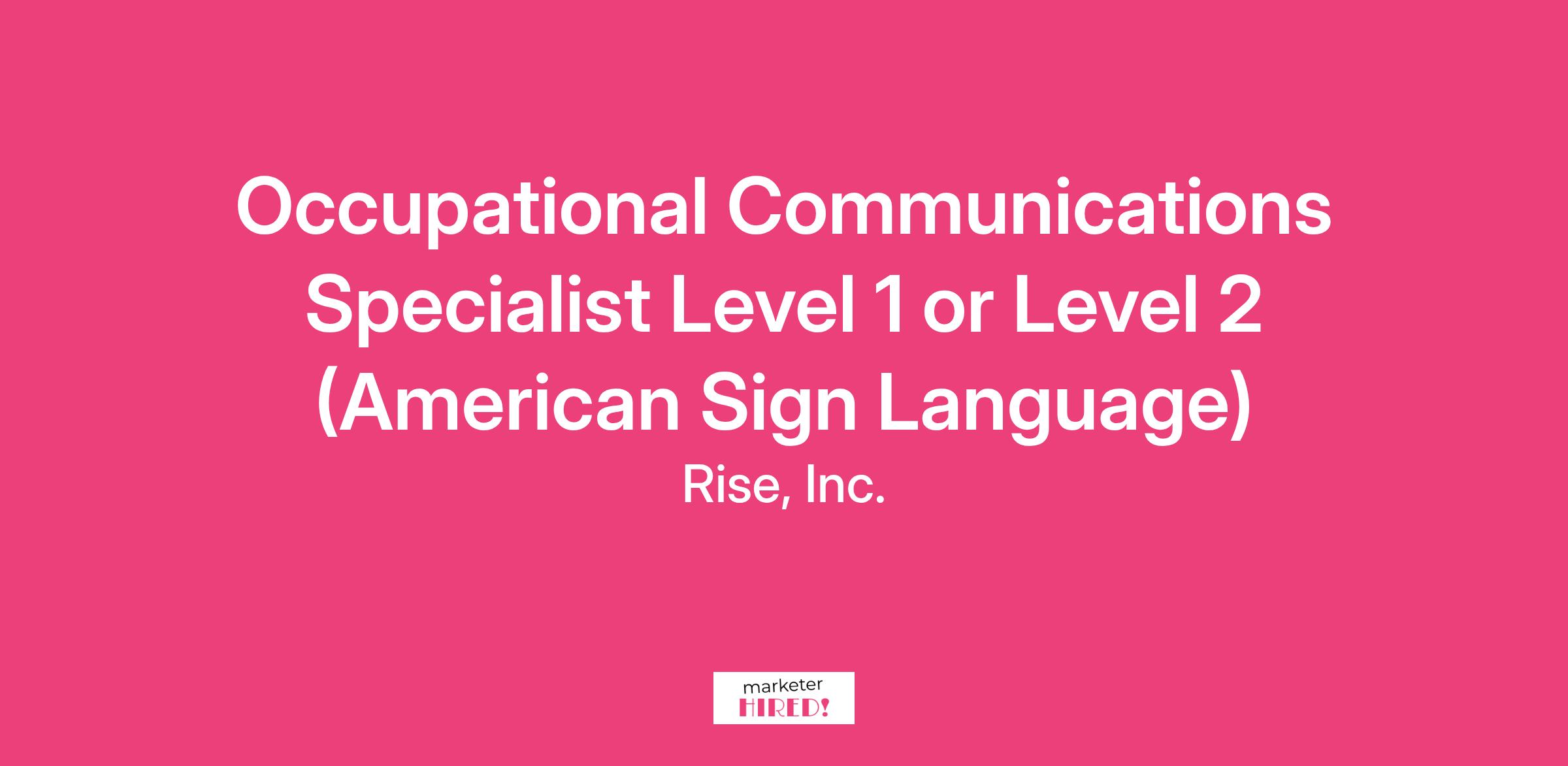 Occupational Communications Specialist Level 1 or Level 2 (American Sign Language)