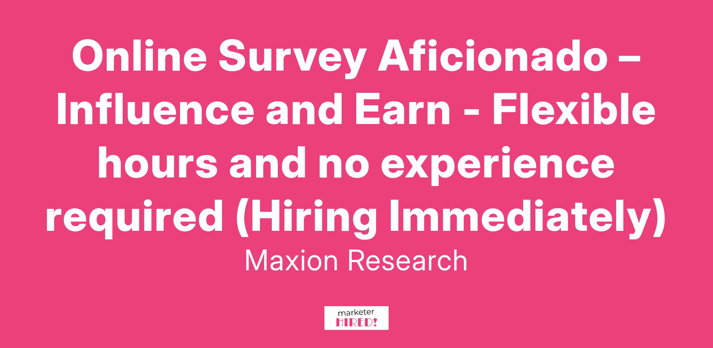 Online Survey Aficionado – Influence and Earn - Flexible hours and no experience required (Hiring Immediately)